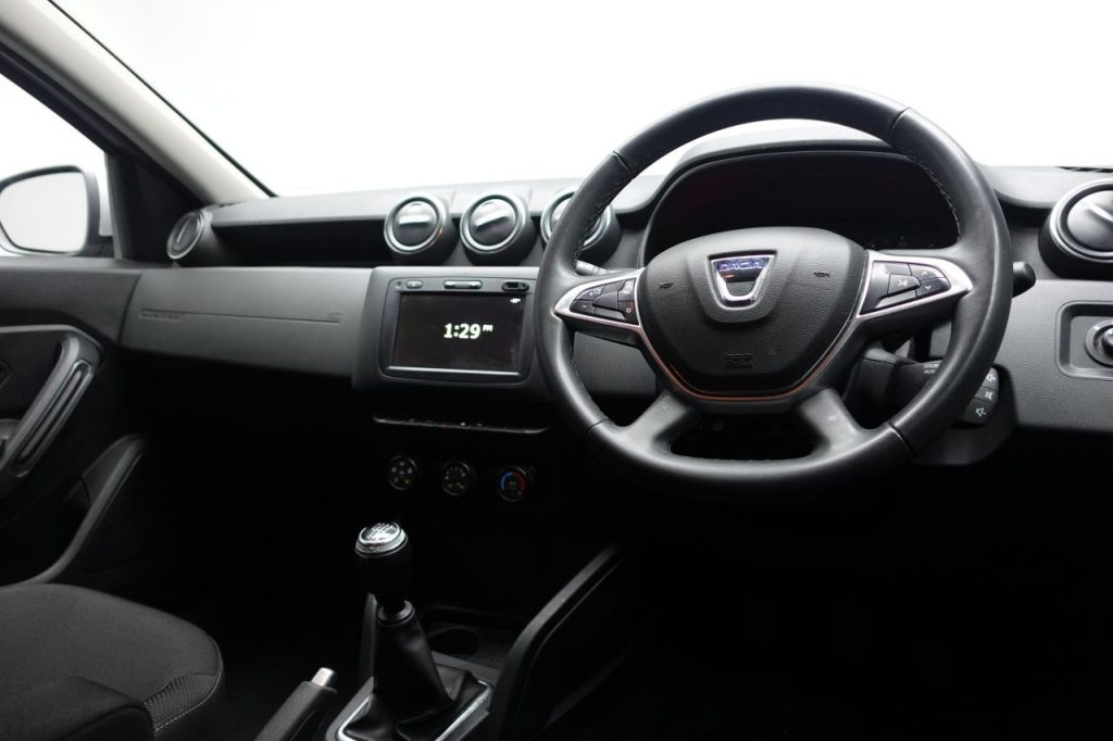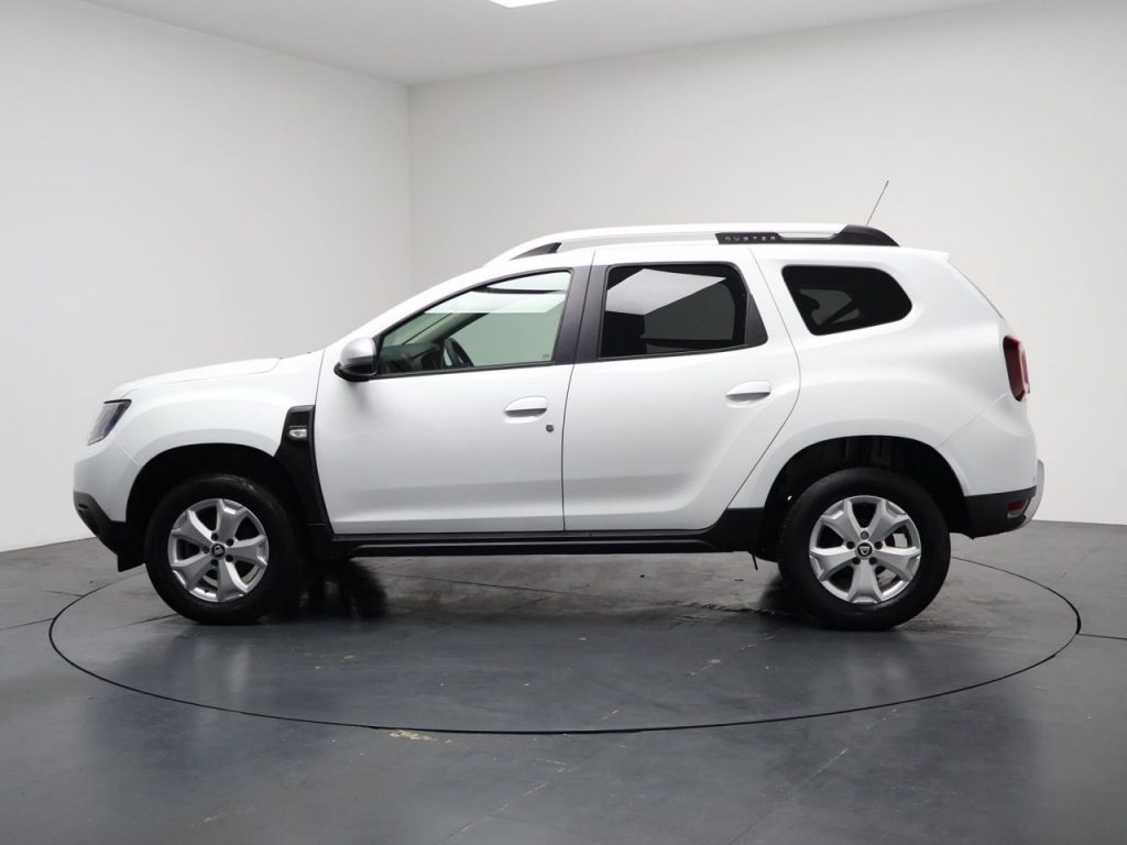 Other features: 3-Speed Front Windscreen Wipers,Air Recirculation – 4-speed Heating and Ventilation,Air Vents – Satin Chrome,Armrest – Front Centre,Boot Light,Centre Console Fascia – Matt Black,Centre Console Surround – Dark Carbon,Decorative Inserts on Front and Rear Door Panels – Piano Black,Door Handles – Interior Front – Matt Black,Door Handles – Interior Rear – Matt Black,Driver Seat Lumbar Adjustment,Fabric Decorative Insert on Front and Rear Door Panels,Front Door Sill Protection Strip,Front Passenger Reading Light,Gear Lever Cap Insert – Satin Chrome,Glovebox Light,Headrests – Rear Height Adjustable x3,Height-Adjustable Drivers Seat,Height-Adjustable Front Headrests,Height-Adjustable Steering Wheel,Instrument Dial Surrounds – Satin Chrome,Lower Steering Wheel Insert – Satin Chrome,Manual Air Conditioning,Map Pockets on Front Seatbacks,Rear Passenger Reading Light,Rear Washer-Wipe,Seats – 60-40 Split Folding Rear,Soft Feel Steering Wheel,Sunvisor with Vanity Mirror – Passenger 16in Alloy Wheels – Cyclade Aluminium,Black Number Plate Surround with Satin Chrome Duster Inscription,Bumpers – Front and Rear Lower Section in Black,Bumpers – Front and Rear Upper Section – Body Coloured,Chrome Front Grille,Dark Glass on Lateral Rear Windows,Door Handles – Body Coloured,Door Mirrors – Grey – Dark Metal,Door Mirrors – Heated and Electrically Adjustable,Electric Windows – Front,Electric Windows – Rear,Heated Rear Window,Roof Bars – Longitudinal with Duster Inscription – Satin Chrome,Side Sills – Black,Skid Plates – Front and Rear – Satin Chrome,Steering Wheel – Chrome Logo Surround,Tailgate Trim with Duster Inscription – Black-Satin Chrome,Tyre Inflation Kit 3-Point Rear Seatbelts x3,7-Function On-Board Computer,Airbags – Driver,Airbags – Front Passenger with Deactivation Function,Airbags – Front Side,Anti-lock Braking System – ABS and Emergency Brake Assist – EBA,ASR – Traction Control with ESC – Electronic Stability Control,Central Locking – Remote,Child Locks in Rear Doors,Cruise Control,Door Open – Visual and Audible Warning,Driver and Passenger Seatbelt Not Fastened – Visual and Audible Warning,ECO Mode,Front Seatbelt Pretensioners,Gear Shift Indicator,Height-Adjustable Front Seatbelts,ISOFIX Points for Child Seats in Both Outer Rear Seats,Rear Parking Camera,Rear Parking Sensors,Rev Counter,Thatcham Approved Engine Immobiliser,Tyre Pressure Monitor DRL – Daytime Running Lights,Dusk Sensor,Electric Power-Assisted Steering,Front Fog Lights,Glacier White,Graphite Cloth – Grey,Headlights – Double Optic,High Level Third Brake Light,LED Automatically Switched on in Main Headlights,Speed Limiter