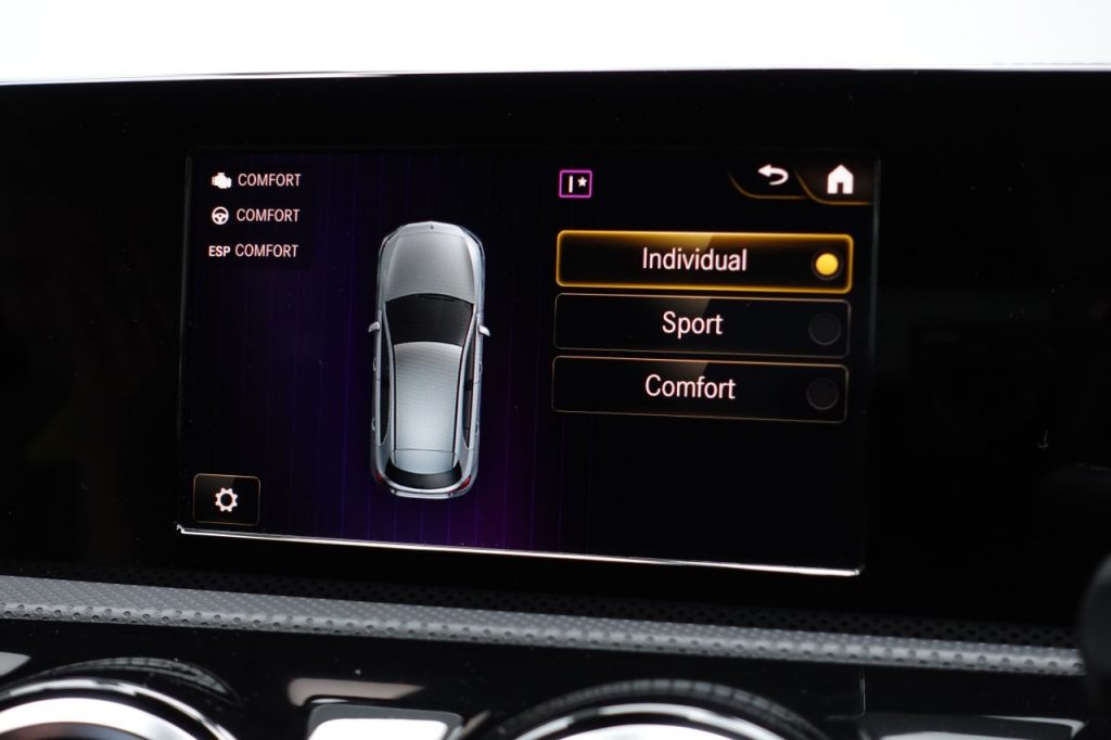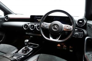 Other features: Air Conditioning – THERMOTRONIC Luxury Automatic Climate Control – Two-Zone with Display,Air Vents – Black with Silver Chrome Elements,Brushed Stainless Steel Sports Pedals with Rubber Studs,Centre Armrest – Front with Stowage,Floor Mats with Stitched Edging and AMG Lettering,Front Door Sills with Mercedes-Benz Lettering,Heated Front Seats,Instrument Display – 7in Display,Interior Mirror with Reading Lamps in Black and Frameless,KEYLESS-GO Starting Function,Light and Sight Package,Luggage Nets on Driver and Front Passengers Backrests,Rain-Sensing Windscreen Wipers with Two Sensitivity Settings,Roof Lining – Black,Seat Belts – Black,Seat Comfort Package,Seats – Rear Seat Backrests – Split Folding 40-20-40,Sports Seats with Integrated Head Restraints,Steering Column – Manually Adjustable for Height and Reach,Steering Wheel – 3-Spoke Multi-Function – Trimmed in Leather with Flattened Bottom Section and Perforated Leather in Grip Area with Galvanised Shift Paddles,Sun Visors with Illuminated Vanity Mirrors 18in Alloy Wheels – AMG 5-Twin-Spoke Design – Painted in Titanium Grey with a High Sheen Finish,AMG Bodystyling – Front and Rear Apron,Beltline Strips – Chrome,Bodystyling – Side Skirts – Body-Coloured,Brake Calipers – Mercedes-Benz Lettering on Front,Bumpers – Body Coloured,Chrome Weather Strip,Diamond Radiator Grille with Pins in Chrome – Silver-Painted Louvre and Insert in Chrome,Door Handles – Body Coloured,Door Mirrors – Electrically Adjustable and Heated with Integrated LED Indicators,Electric Windows – 4,Exhaust System – Two Visible Tailpipe Trim Elements and Rear Apron with Trim in Chrome,Glass – Rear Windscreen – Heated with Timer Control,Privacy Glass,Rear Fog Light,Summer Tyres,TIREFIT Tyre-Sealant Kit,Window Line – Chrome ABS – Anti-Lock Braking System with BAS – Brake Assist,Active Bonnet – Pedestrian Safety Measure which Detects an Impact and Raises Bonnet by 65mm,Active Brake ASSIST,Active Lane Keeping Assist,Adaptive Brake Assist with Hold Function and Hill Start Assist,Adaptive Brake Lights,Airbag – Kneebag for Driver,Airbags – Dual Stage – Driver and Front Passenger,Airbags – Windowbags for Driver and Front Passenger,Alarm System with Immobiliser and Interior Protection – Thatcham Category 1,ATTENTION Assist,Automatic Child Seat Recognition Sensor,Brake-Pad Wear Warning Indicator,Car Wash Mode,Childproof Locks – Manually Operated for Rear Doors and Electrically Operated for Rear Power Windows,Crash-Responsive Emergency Lighting,Cruise Control with Limiter,Dynamic Select with a Choice of Driving Modes – ECO-Comfort-Sport and Individual,Electric Parking Brake,ESP – Electronic Stability Programme with ASR – Acceleration Skid Control,ESP Curve Dynamic Assist,First Aid Kit and Warning Triangle,Hey Mercedes – Voice Activation, Direct Steer Speed-Sensitive Power Steering,Headlamp Assist – Automatic Headlamp Activation,High Level Third Brake Light – LED,LED High Performance Headlamps with Integrated LED Daytime Running Lights,LED Tail Lights,Rear Axle – Torsion Beam,Suspension – Lowered Comfort Suspension