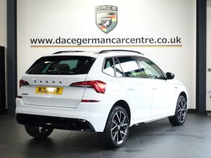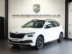 Quality Used 2021 WHITE SKODA KAMIQ SUV 1.5 TSI ACT Monte Carlo SUV 5dr Petrol DSG Euro 6 (s/s) (150 ps) (first registered on 2021-03-31) for sale in Altrincham. This fantastic SUV car is located at Dace German Car Centre, 309 Manchester Road, Stockport, Cheshire, SK4 5EA – near Altrincham and listed with price tag of £15549.00 GBP.