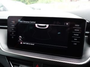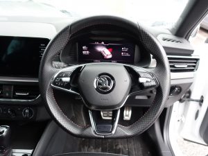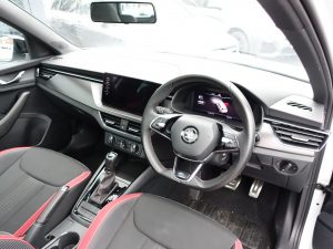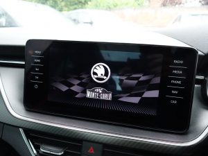 Other features: 3-Spoke Leather Sports Multi-Function Steering Wheel,Air Vents with Chrome Surround,Aluminium Pedals,Ambient Lighting White,Black Ceiling for Black/ Beige Interior,Carbon Effect Dashboard Inserts,Chrome Interior Door Handles,Front Centre Armrest,Gesture Control,Glove Compartment – Illuminated,Height Adjustable Driver and Front Passenger Seat – Manual,Ice Scraper,Kamiq Door Sills,Leather Gear Shift Lever,Light Sensors,Manual Air Conditioning with Pollen Filter,Manual Lumbar Support for Front Seats,Manual Parking Brake,Reading Lights – Front and Rear,Seats – Front Passenger Height Adjustment,Sun Visors with Illumination on Front Passenger Side,Textile Floor Mats,Third Rear Headrest,Umbrella in Driver Side Door,Virtual Cockpit 18in Alloy Wheels – Vega Black,Anti-Theft Locking Wheel Bolts,Black Lettering on Boot Lid,Black Radiator Grille and Door Mirrors,Black Roof Rails,Body Coloured Roof Spoiler,Chrome Moulding around Grille,Door Handles – Body Coloured,Electrically Adjustable and Heated Door Mirrors,Front and Rear Electric Windows,Headlights – Range Adjustment,Heated Rear Windscreen,Monte Carlo Plaque,Panoramic Sunroof with Black Roof Rails,Privacy Glass,Rear Diffuser – Black,Rear Fog Lights,Sports Bumpers,Tyre Repair Kit ABS – Anti-Lock Braking System,Airbags – Passenger Deactivation Switch,Alarm with SAFE Function for Central Locking,Cruise Control,Driver and Front Passenger Airbag,Front Assistant,HHC – Hill Hold Control,ISOFIX Child Seat Preparation – Front Passenger,ISOFIX Child Seat Preparation – Outer Rear,Lane Assistant,One Tone Horn,Rear Disc Brakes,Rear Parking Sensors,Seatbelt Reminder for Driver and Co-Driver,Side Airbags in Front with Curtain Airbags,Top Tether for Front Passenger Seat,TPMS – Tyre Pressure Monitoring System,Trip Computer – Black and White Candy White,Full LED Headlights,Moon White,Power Steering,Rear LED Lights with Dynamic Indicators – High Functionality,Skoda Sound System,Speed Limiter