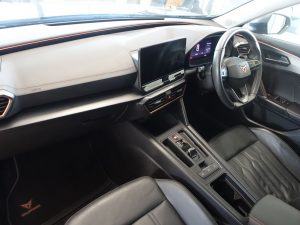 Other features: 60-40 Rear Seats with Central Armrest and Mechanical Seat Release,Auto Dimming Rear View Mirror,Copper and Aluminium Interior Detailing,Front and Rear Head Restraints,Front Centre Armrest,Headlining – Black,Illuminated Interior Front Door Sills,Illuminated Sunvisor with Mirror,Leather Multi-function Steering Wheel – Heated with Gear Shift Paddles,Rain Sensing Wipers,Reading Lights – 2x Front – 2x Rear,Smart Wraparound Interior Lighting,Three Zone Climate Control with Control Panel in the Rear,Variable Luggage Compartment Floor,Welcome Lights 19in Alloy Wheels – Exclusive Machined Sport – Matt Black and Silver,Breakdown Kit,Electric Window – Front,Electrically Adjustable – Folding and Heated Door Mirrors with Memory Function,Electronic Locking Differential with Dynamic Traction Support,Gloss Black Roof Rails and Window Surrounds,Locking Wheel Bolts,Rear Diffuser with Black Simulated Exhaust Pipes,Tinted Rear Windows ABS – Anti-Lock Braking System,Airbag on Driver and Front Passenger Side with Front Passenger Airbag Deactivation,Anti-Theft Alarm,CUPRA Connect – Safety – Service – Remote and Online,Digital Cockpit and Configurable Dashboard,Driver Alert System,Driving Profile Selection,Electronic Parking Brake,Forward Collision Warning with Automatic Braking,Front Side Curtain Airbag,ISOFIX,Kessy – Keyless Entry and Start,Lane Assist,Park Assist – including Front and Rear Sensors,Predictive Adaptive Cruise Control with Speed Limiter,Rear View Camera,Safety and Driving Pack M,Seat Belt Reminder,Tyre Pressure Monitoring System Daytime Running Lights with Automatic Headlight Control and Coming-Leaving Home Lights,Dynamic Headlight Range Control,Front Fog Lights with Cornering Function,LED Headlight,LED Taillights with Dynamic Indicator,Midnight Black,Power Steering