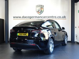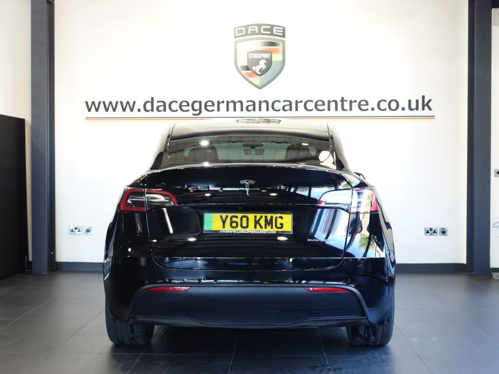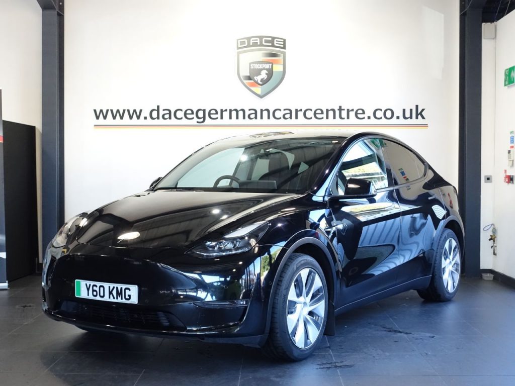 Quality Used 2022 BLACK TESLA MODEL Y SUV (Dual Motor) Long Range SUV 5dr Electric Auto 4WDE (384 bhp) (first registered on 2022-06-27) for sale in Altrincham. This fantastic SUV car is located at Dace German Car Centre, 309 Manchester Road, Stockport, Cheshire, SK4 5EA – near Altrincham and listed with price tag of £23373.00 GBP.