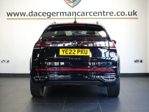 Quality Used 2022 BLACK VOLKSWAGEN TAIGO SUV 1.0 TSI R-Line SUV 5dr Petrol DSG Euro 6 (s/s) (110 ps) (first registered on 2022-05-12) for sale in Altrincham. This fantastic SUV car is located at Dace German Car Centre, 309 Manchester Road, Stockport, Cheshire, SK4 5EA – near Altrincham and listed with price tag of £17440.00 GBP.