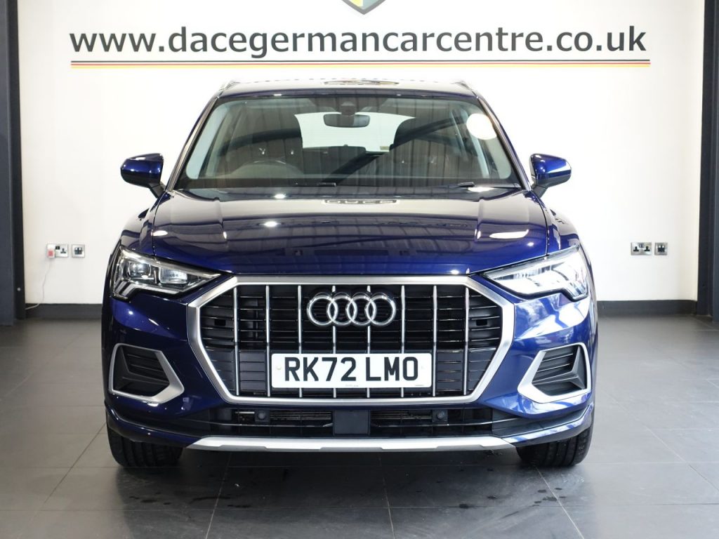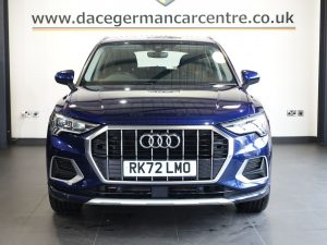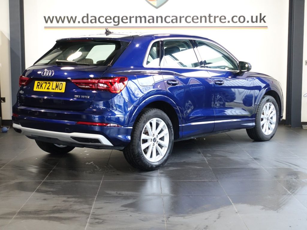 Quality Used 2022 BLUE AUDI Q3 SUV 1.5 TFSI CoD 35 Sport SUV 5dr Petrol S Tronic Euro 6 (s/s) (150 ps) (first registered on 2022-09-14) for sale in Altrincham. This fantastic SUV car is located at Dace German Car Centre, 309 Manchester Road, Stockport, Cheshire, SK4 5EA – near Altrincham and listed with price tag of £20970.00 GBP.