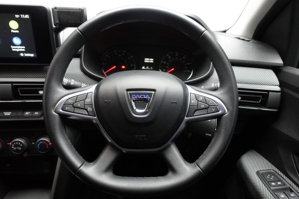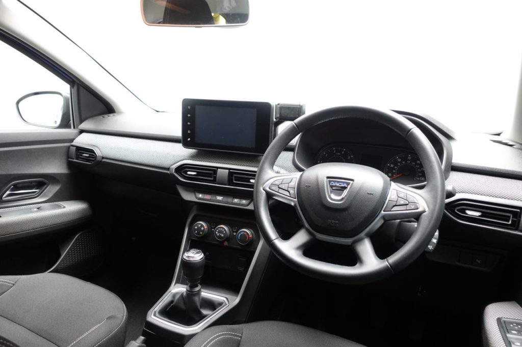 Other features: 3 Height-Adjustable Rear Headrests,3-Speed Front Windscreen Wipers,Air Vents – Satin Chrome,Automatic Central Locking,Automatic Wiper,Deco Part on Instrument Panel and Door with Textile,Driver and Passenger Vanity Mirror with Cover,Fixed Smartphone Holder on Dashboard,Height and Depth-Adjustable Steering Wheel,Height-Adjustable Drivers Seat,Height-Adjustable Front Headrests,Interior Door Handles – Satin Chrome,Manual Air Conditioning,New 3.5in TFT Instrument Panel with Onboard Computer,Rear Washer-Wipe,Soft Feel Steering Wheel,Split Folding Rear Bench Seat Back – 1-3 – 2-3 15in Steel Wheels – Flex,Bumpers – Front and Rear Body Coloured,Door Handles – Body Coloured,Door Mirrors – Body Coloured,Door Mirrors – Heated and Electrically Adjustable,Drivers One Touch Electric Windows and Rear Electric Windows,Heated Rear Window,Radiator Grille – Black,Tinted Windows 3-Point Rear Seatbelts x3,6 Airbags – Front and Side Driver and Passengers including Curtain Airbags,Anti-lock Braking System – ABS and Emergency Brake Assist – EBA,Automatic Emergency Braking System – AEBS,Central Locking – Remote,Child Locks in Rear Doors,Cruise Control and Speed Limiter,Door Open – Visual and Audible Warning,Driver and Passenger Seatbelt Not Fastened Warning,ECO Mode,Engine Immobiliser,ESC – Electronic Stability Control,ESP – Electronic Stability Programme and HSA – Hill Start Assist,Front Seatbelt Pretensioners,Gear Shift Indicator,Height-Adjustable Front Seatbelts,ISOFIX Points for Child Seats in Both Outer Rear Seats,Keyless Entry,Rear Parking Sensors and Rear-View Camera,Rev Counter,Tyre Pressure Monitor Automatic Lighting System,Cloth – Titanium Black,Electric Power-Assisted Steering,Front Fog Lights,High Level Third Brake Light,Iron Blue,LED Automatic Daytime Running Lights,LED Y Shape Dacia Lighting Signature