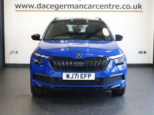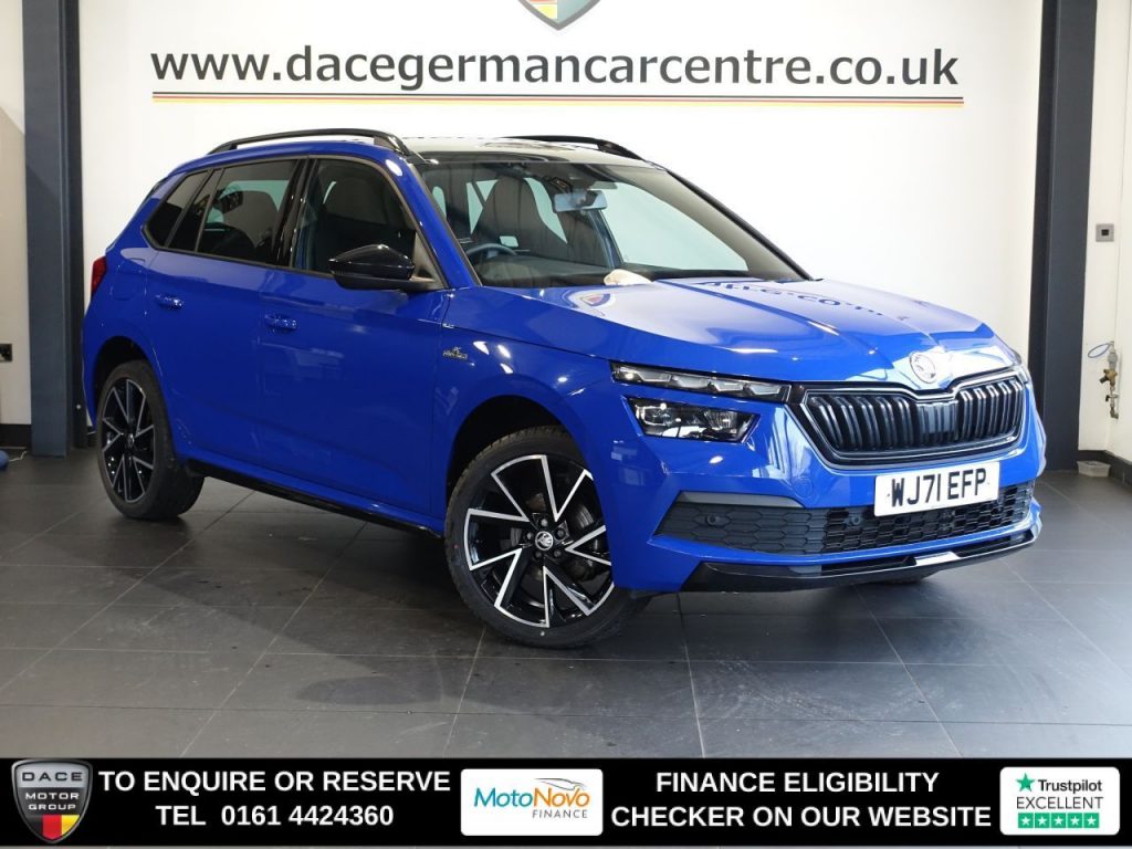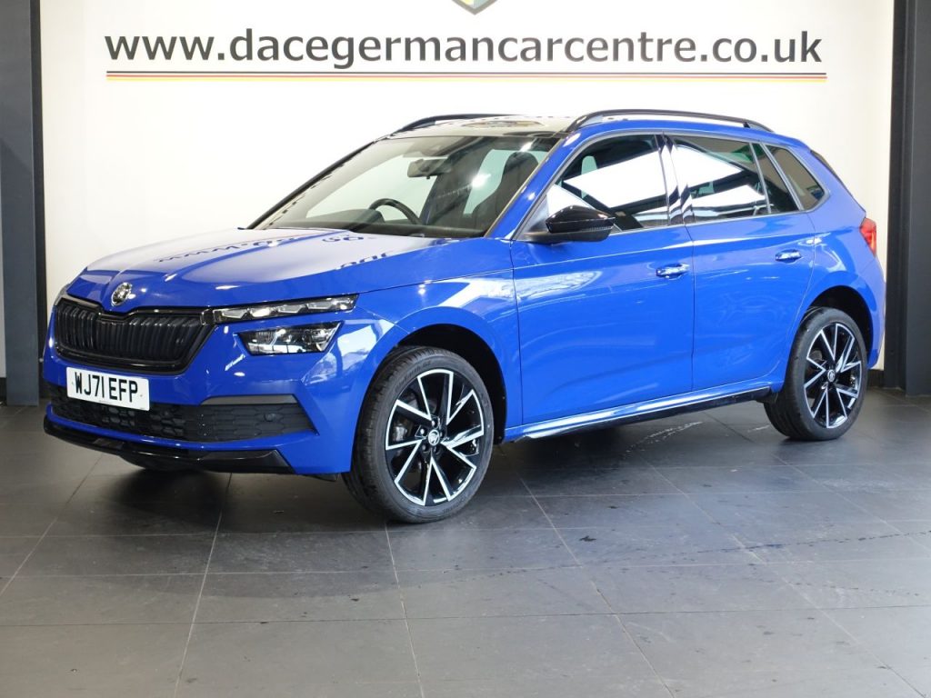 Quality Used 2022 BLUE SKODA KAMIQ SUV 1.0 TSI Monte Carlo SUV 5dr Petrol Manual Euro 6 (s/s) (110 ps) (first registered on 2022-01-05) for sale in Altrincham. This fantastic SUV car is located at Dace German Car Centre, 309 Manchester Road, Stockport, Cheshire, SK4 5EA – near Altrincham and listed with price tag of £13940.00 GBP.