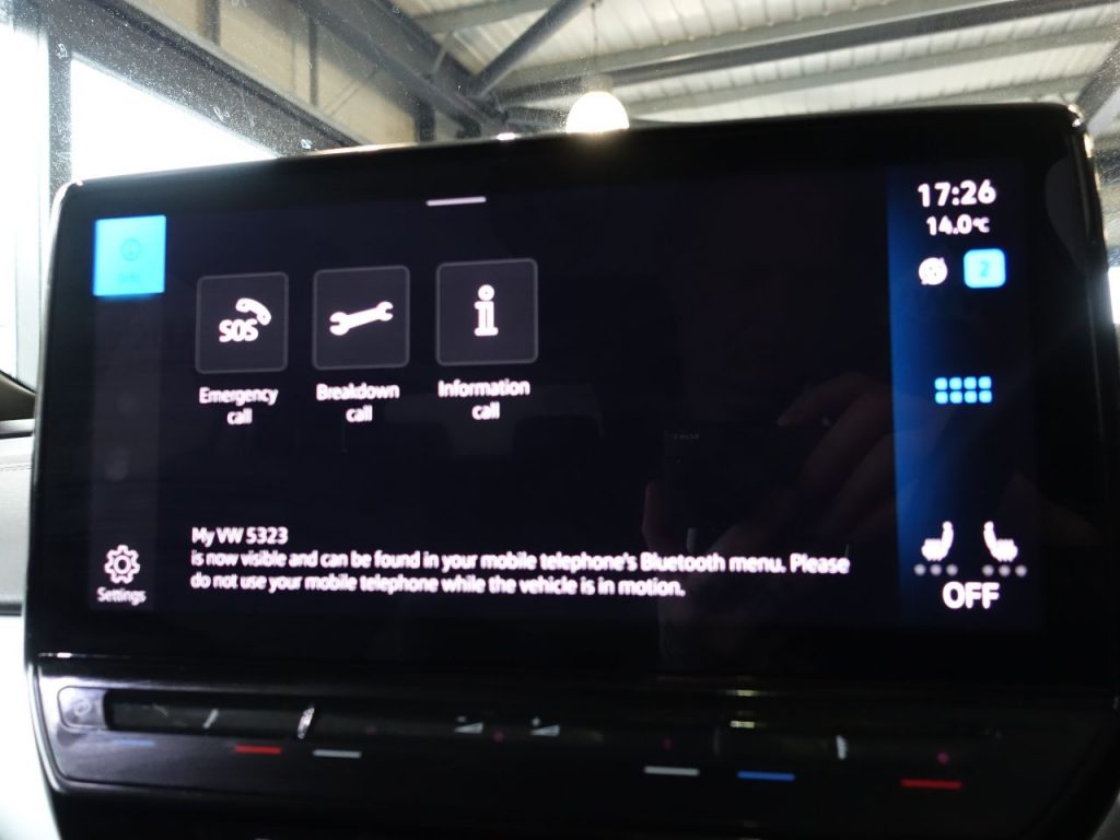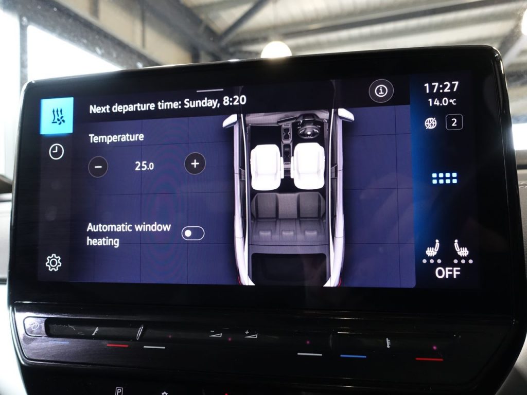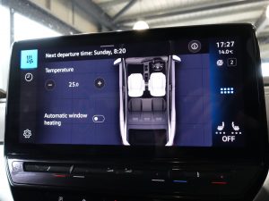 Other features: 3 Rear Head Restraints,Armrest – Drivers and Passenger,Carpet Mats – Front and Rear,Central Control Unit – Infotainment Screen – in Black,Centre Console with Storage Compartments,Charging Socket AC Type 2,Comfort Package,Comfort Package Plus,Door and Side Trim Panel with Leatherette Insert,Drivers and Front Passengers Safety Optimised Head Restraints,Electric Auxiliary Air Heater,Front Seats – Interior Style Comfort Seats,Interior Style,Onboard Battery Charger,Rear View Mirror – Auto Dimming,Sun Visors with Illuminated Vanity Mirrors,Variable Boot Floor – Height Adjustable and Removable,Welcome Light 19in Alloy Wheels – Hamar,Body Coloured Bumpers,Climate Windscreen,Design Package,Design Package Plus,Electric Windows – Front,Emblems,Exterior Ambient Lighting,Exterior Mirrors – Aspherical on Driver Side – Convex on Front Passenger Side,Gloss Black Door Mirrors with Integrated Indicators,Roof Trim Strip in Matte Black,Tool Kit and Tyre Mobility Set 12-Volt Compressor and Tyre Sealant,Trims for Alloy Wheels 3-Point Seatbelts in Front with Seatbelt Pretensioners,ABS – Anti-Lock Braking System,Assistance Package,Autonomous Emergency Braking – Front Assist with Pedestrian and Cycling Monitoring,Curtain and Side Airbags in Front with Centre Airbag,Driver Alert System,Drivers and Front Passengers Airbags with Front Passenger Airbag Deactivation Switch,Driving Profile Select,First Aid Kit and Warning Triangle and Safety Vest,ID Light and Natural Voice Control,ISOFIX Child Seat Preparation – Easy Fit,Oncoming Vehicle Braking when Turning including Swerve Support,Online Service with OCU and Head Unit Coding – Without Engine Immobilizer Interconnection,Park Distance Control with Front and Rear Parking Sensors,Single-Tone Horn,Speedo and Rev Counter – Electronic Odometer – Trip – Service Interval Display – Exterior Temperature Gauge,Standard Electronic Engine Sound – Exterior Sound Actuator,Traffic Sign Recognition,Tyre Pressure Loss Indicator,Warning Signal and Warning Light for Front and Rear Seat Belts Not Fastened Auxillary Battery with Operating Voltage 12 V,Blue Dusk,Charging Cable Mode 3 – Type 2 – 7.2KW 32A,DC Battery Charging Capability – Type 2-CCS,Power Assisted Steering – Speed Sensitive