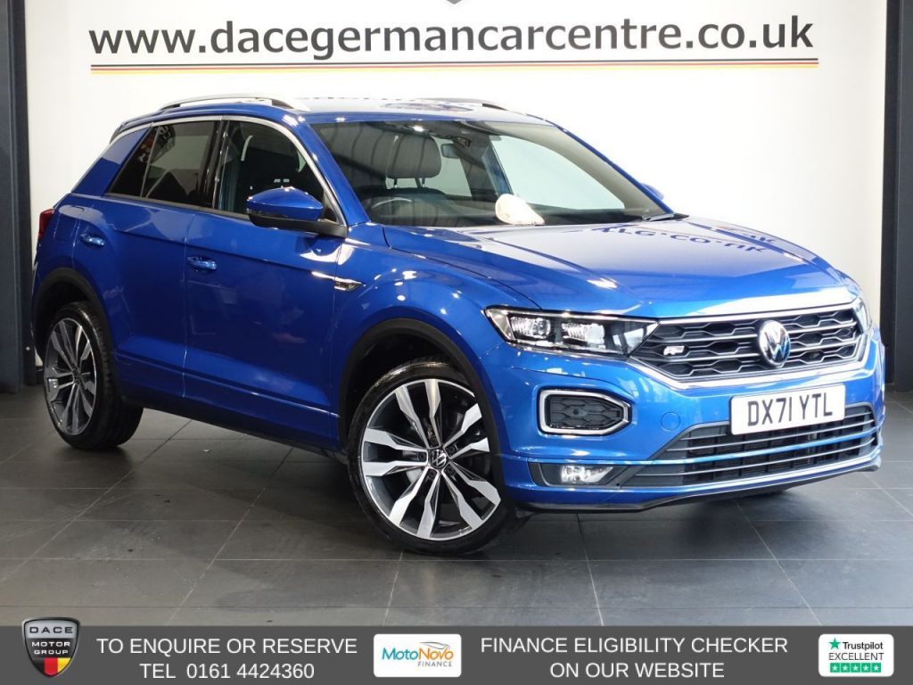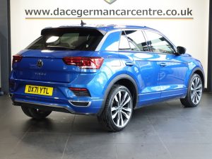 Quality Used 2022 BLUE VOLKSWAGEN T-ROC SUV 2.0 TDI EVO R-Line SUV 5dr Diesel Manual Euro 6 (s/s) (150 ps) (first registered on 2022-01-24) for sale in Altrincham. This fantastic SUV car is located at Dace German Car Centre, 309 Manchester Road, Stockport, Cheshire, SK4 5EA – near Altrincham and listed with price tag of £19440.00 GBP.