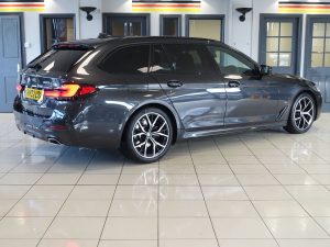 Quality Used 2022 GREY BMW 5 SERIES Estate 2.0 520d MHT M Sport Touring 5dr Diesel Hybrid Steptronic Euro 6 (s/s) (190 ps) (first registered on 2022-03-31) for sale in Wilmslow. This fantastic Estate car is located at Dace Specialist Car Centre Stockport, 417-429 Buxton Road, Stockport, Cheshire, SK2 7HE – near Wilmslow and listed with price tag of £27840.00 GBP.
