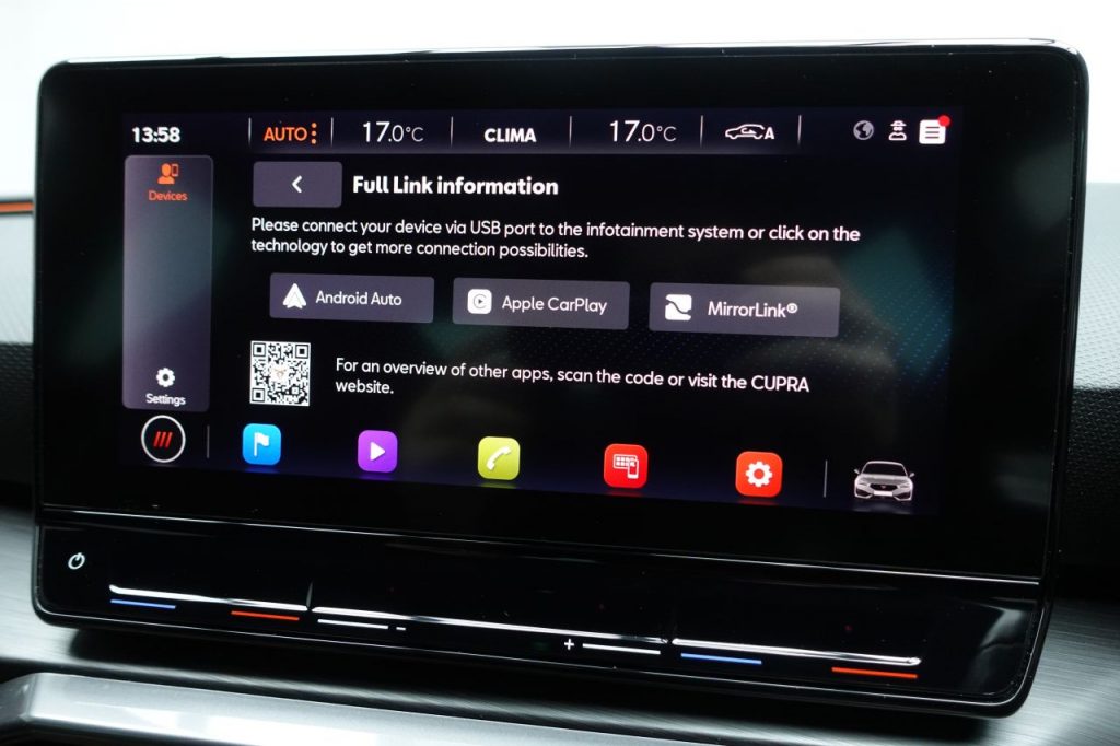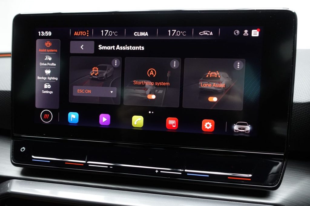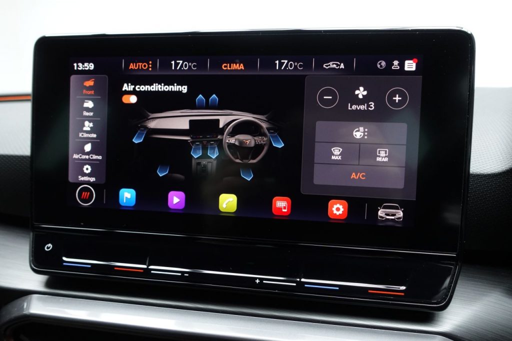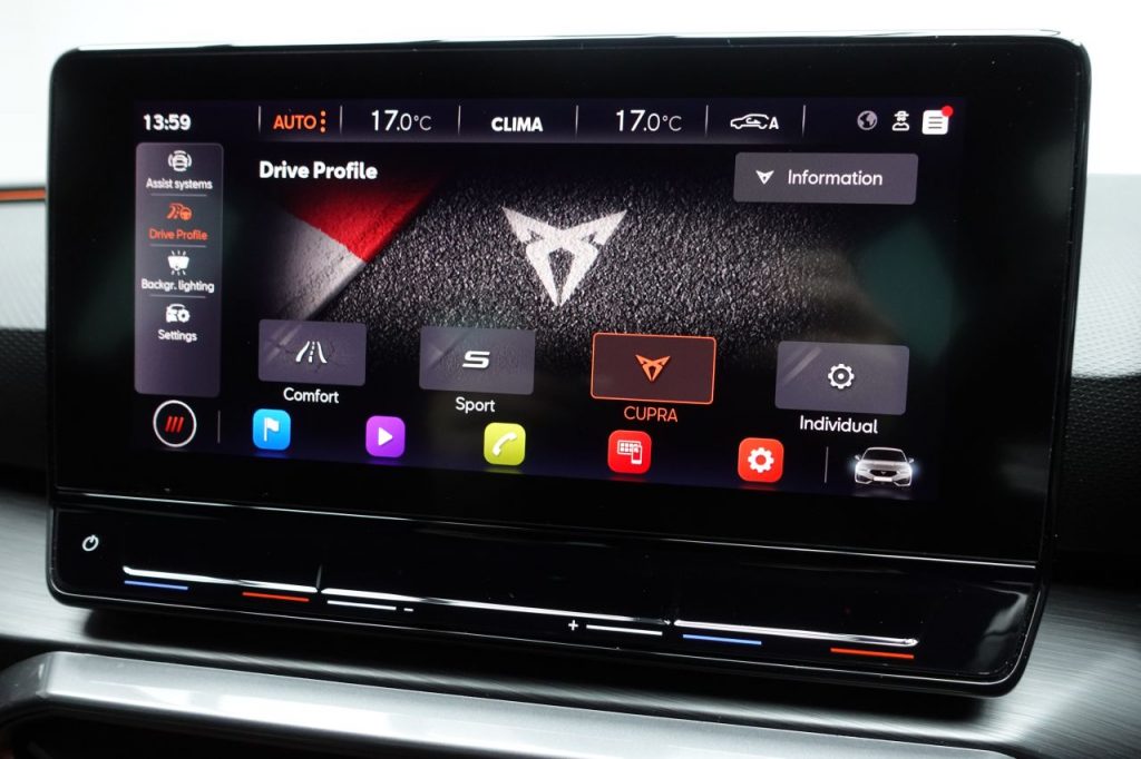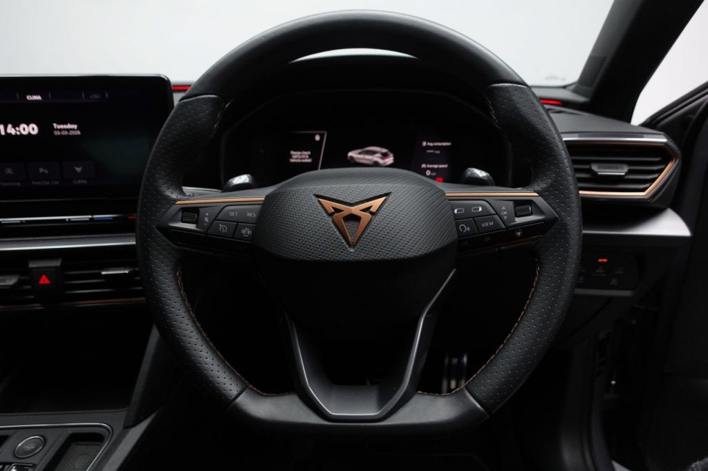 Other features: Auto Dimming Rear View Mirror,Chrome and Copper Detailing,CUPRA Leather Flat Bottomed – Heated – Perforated Steering Wheel with Gearshift Paddles,CUPRA Safety and Driving Pack XL,Cupra Sport Pedals,Drivers and Passenger Seats – Manual Height Adjustment,Five Headrests,Folding Boot Cover,Front and Rear Reading Lights – Four,Front Centre Armrest,Front Seats Manual Lumbar Adjustment,Headlining – Black,Illuminated Front Door Sill,Illuminated Sunvisor with Mirror,Interior Ambient Lighting,Interior Wraparound Lighting,Rain Sensing Wipers,Rear Bench Seats with 60-40 Split and Armrest,Sports Bucket Seats,Storage Pockets on Rear of Front Seats,Three Zone Climate Control,Tool Kit – with Jack 18in Alloy Wheels – Sport Machined – Black and Silver,CUPRA Black Brake Calipers,CUPRA Sports Bumpers,Dark Tinted Rear Windows,Door Mirrors Electrically Adjustable – Folding and Heated,Electric Front and Rear Windows,LED Rear Fog Lamps,Lockable Tailgate,Panoramic Sunroof,Rear Diffuser with Twin Exhaust Pipe on Each Side,Space Saver Spare Wheel – in Lieu of Standard Tyre Repair Kit ABS – Anti-Lock Braking System,Anti-Theft Alarm System – Interior Monitoring – Backup Horn and Towing Protection,Cruise Control with Speed Limiter,CUPRA Connect – Safety – Service – Remote and Online,CUPRA Drive Profile,Digital Cockpit,Driver and Front Passenger Airbags with Front Passenger Airbag Deactivation – Front Side and Curtain Airbag,Electronic Parking Brake,Extended Safety System,Front and Rear Seat Belt Reminders,Front Assist – Forward Collision Warning Braking Reaction to Vehicles – Pedestrians and Cyclists,ISOFIX Points in Outer Rear Seats with Top Tether Anchorage Points,KESSY Advanced – Keyless Start – Keyless Entry,Lane Assist,Park Assist – including Front and Rear Sensors,Rear View Camera,Safety and Driving Pack L,Safety and Driving Pack M,Tiredness Recognition System,Tyre Pressure Monitoring System Brake Control System – ESC and Brake Booster,Desire Red,Electro-Mechanical Power Steering – Speed Sensitive,Graphene Grey,LED Front Fog Lamps with Cornering Function,LED Headlight,Magnetic Tech Grey,Magnetic Tech Matte Grey,Midnight Black,Nevada White,Petrol Blue,PVC-Cloth – Black with Copper Stitching,Separate Daytime Running Lights with Automatic Headlight Control and Coming Home Feature,White