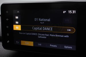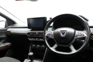 Other features: 3 Height-Adjustable Rear Headrests,3-Speed Front Windscreen Wipers,Air Vents – Satin Chrome and Copper Orange,Automatic Central Locking,Automatic Wiper,Deco Part on Instrument Panel and Door with Textile,Driver and Passenger Vanity Mirror with Cover,Fixed Smartphone Holder on Dashboard,Height and Depth-Adjustable Steering Wheel,Height-Adjustable Drivers Seat,Height-Adjustable Front Headrests,Interior Door Handles – Satin Chrome,Manual Air Conditioning,New 3.5in TFT Instrument Panel with Onboard Computer,Rear Washer-Wipe,Soft Feel Steering Wheel,Split Folding Rear Bench Seat Back – 1-3 – 2-3 16in Steel Wheels – Flex with Full Wheel Cap,Bumpers – Front and Rear Body Coloured,Door Handles – Body Coloured,Door Mirrors – Body Coloured,Door Mirrors – Heated and Electrically Adjustable,Drivers One Touch Electric Windows and Rear Electric Windows,Heated Rear Window,Longitudinal Roof Bars – Chrome,Modular Roof Bars,Radiator Grille – Chrome,Tinted Windows 3-Point Rear Seatbelts x3,6 Airbags – Front and Side Driver and Passengers including Curtain Airbags,Anti-lock Braking System – ABS and Emergency Brake Assist – EBA,Automatic Emergency Braking System – AEBS,Central Locking – Remote,Child Locks in Rear Doors,Cruise Control and Speed Limiter,Door Open – Visual and Audible Warning,Driver and Passenger Seatbelt Not Fastened Warning,ECO Mode,Engine Immobiliser,ESC – Electronic Stability Control,ESP – Electronic Stability Programme and HSA – Hill Start Assist,Front Seatbelt Pretensioners,Gear Shift Indicator,Height-Adjustable Front Seatbelts,ISOFIX Points for Child Seats in Both Outer Rear Seats,Keyless Entry,Rear Parking Sensors and Rear-View Camera,Rev Counter,Tyre Pressure Monitor Automatic Lighting System,Cloth – Titanium Black,Electric Power-Assisted Steering,Front Fog Lights,High Level Third Brake Light,LED Automatic Daytime Running Lights,LED Y Shape Dacia Lighting Signature,Slate Grey