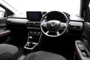 Other features: 3 Height-Adjustable Rear Headrests,3-Speed Front Windscreen Wipers,Air Vents – Satin Chrome and Copper Orange,Automatic Air Conditioning,Automatic Central Locking,Automatic Wiper,Deco Part on Instrument Panel and Door with Textile,Driver and Passenger Vanity Mirror with Cover,Fixed Smartphone Holder on Dashboard,Height and Depth-Adjustable Steering Wheel,Height-Adjustable Drivers Seat,Height-Adjustable Front Headrests,High Central Armrest with Console Storage,Interior Door Handles – Satin Chrome,New 3.5in TFT Instrument Panel with Onboard Computer,Rear Washer-Wipe,Soft Feel Steering Wheel,Split Folding Rear Bench Seat Back – 1-3 – 2-3 16in Alloy Wheels – Diamond-Effect,Bumpers – Front and Rear Body Coloured,Door Handles – Body Coloured,Door Mirrors – Body Coloured,Door Mirrors – Heated and Electrically Adjustable,Drivers One Touch Electric Windows and Rear Electric Windows,Emergency Spare Wheel,Heated Rear Window,Longitudinal Roof Bars – Chrome,Modular Roof Bars,Radiator Grille – Chrome,Tinted Windows 3-Point Rear Seatbelts x3,6 Airbags – Front and Side Driver and Passengers including Curtain Airbags,Anti-lock Braking System – ABS and Emergency Brake Assist – EBA,Automatic Emergency Braking System – AEBS,Blind Spot Warning,Central Locking – Remote,Child Locks in Rear Doors,Cruise Control and Speed Limiter,Door Open – Visual and Audible Warning,Driver and Passenger Seatbelt Not Fastened Warning,ECO Mode,Electronic Parking Brake,Engine Immobiliser,ESC – Electronic Stability Control,ESP – Electronic Stability Programme and HSA – Hill Start Assist,Front and Rear Parking Sensors and Rear-View Camera,Front Seatbelt Pretensioners,Gear Shift Indicator,Height-Adjustable Front Seatbelts,ISOFIX Points for Child Seats in Both Outer Rear Seats,Keyless Entry,Rev Counter,Tyre Pressure Monitor Automatic Lighting System,Cloth – Titanium Black,Electric Power-Assisted Steering,Front Fog Lights,High Level Third Brake Light,LED Automatic Daytime Running Lights,LED Y Shape Dacia Lighting Signature,Slate Grey
