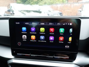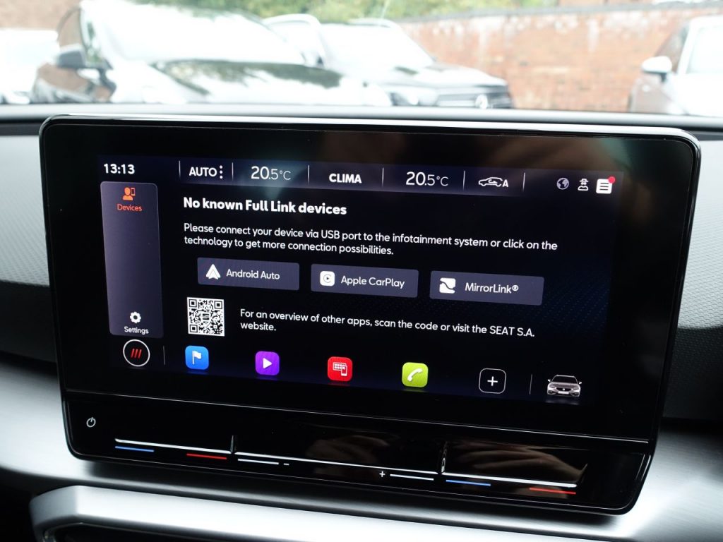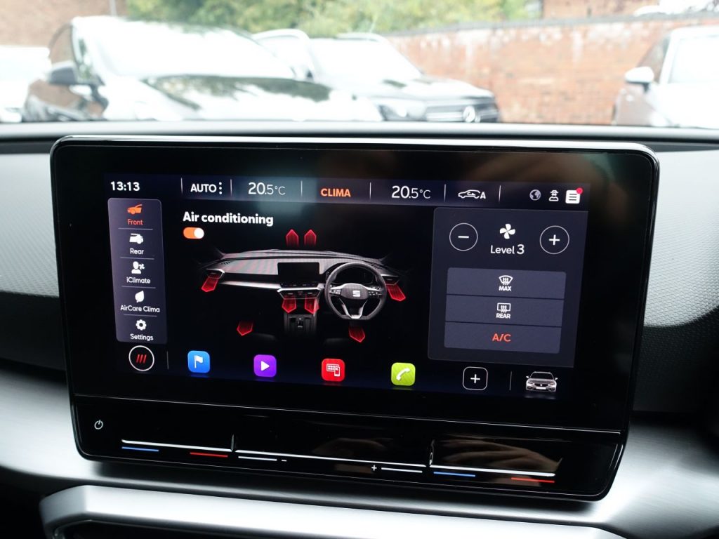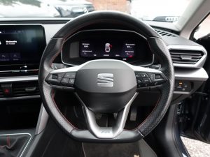 Other features: Ambient Lighting,Auto Dimming Rear View Mirror,Chrome Interior Detailing,Digital Cockpit,Driver and Passenger Seat Manual Height Adjustment,Driver and Passenger Seat with Lumbar Adjustment,Front and Rear Reading Lights – Four,Front Centre Armrest,Front Seat Back Storage Pockets,Illuminated Front Door Sill,Interior Lighting,KESSY Go – Keyless Start,Leather Flat Bottomed – Perforated Steering Wheel with Red Stitching and FR Logo,Rain Sensing Wipers,Rear Bench Seats with 60-40 Split and Armrest,Rear Fog Light,Sliding Boot Cover,Sunvisors with Illuminated Mirrors,Three-Zone Climate Control,Tool Kit 17in Alloy Wheels – Dynamic Bi-Spoke,Dark Tinted Rear Windows,Electrically Adjustable Folding and Heated Door Mirrors,Emergency Tyre Repair Kit,FR Sport Bumpers,Front and Rear Electric Windows,Lockable Tailgate,Matt Black Roof Rails Anti-Lock Brakes – ABS,Anti-Theft Alarm System – Interior Monitoring – Backup Horn and Towing Protection,Brake Control System – ESC and Brake Booster,Cruise Control with Speed Limiter,Driver and Front Passenger Airbags with Front Passenger Airbag De-Activation – Front Side – Curtain Airbag,Electric Parking Brake,Extended Safety System,Front Assist,ISOFIX Points in Outer Rear Seats with Top Tether Anchorage Points,Lane Keeping System,Park Assist including Front and Rear Parking Sensors,SEAT Drive Profile,Seatbelt Reminder – Front and Rear,Tiredness Recognition System,Tyre Pressure Monitoring System Electro-Mechanical Power Steering – Speed-Sensitive,Fabric – Two Tone Grey with Lava Red Stitching,Front LED Fog Lights with Cornering Function,LED Headlights,Magnetic Grey,Separate Daytime Running Light with Automatic Headlight Control and Automatic Coming Home Feature,Sports Suspension