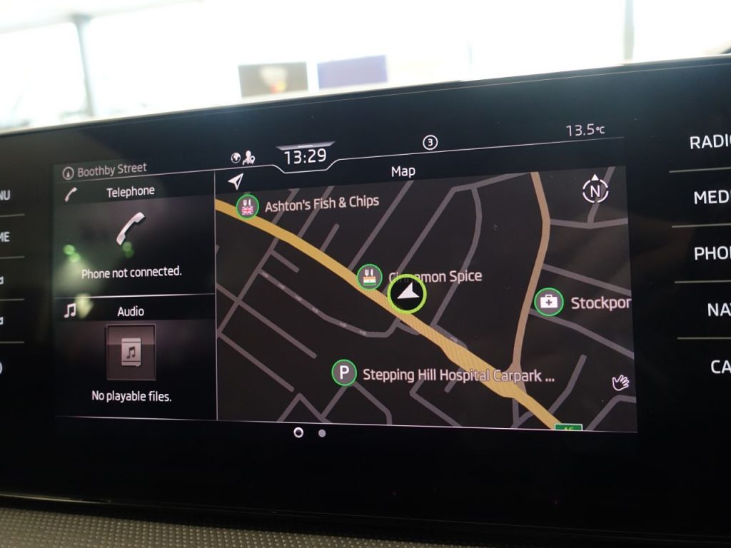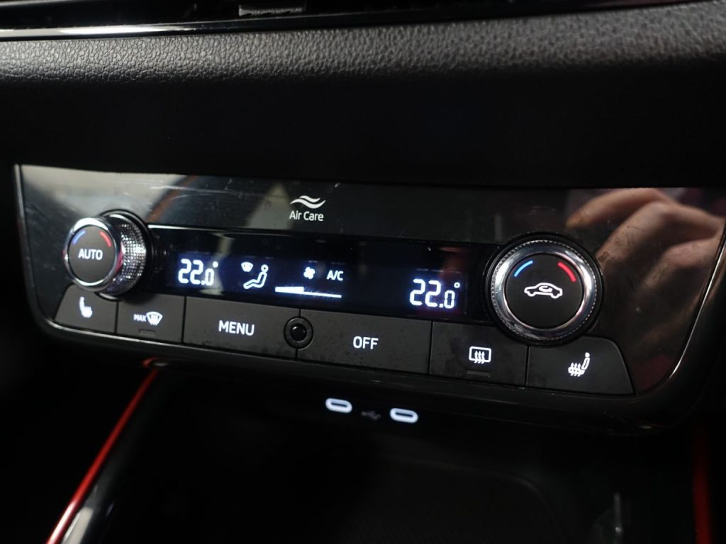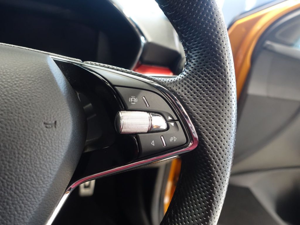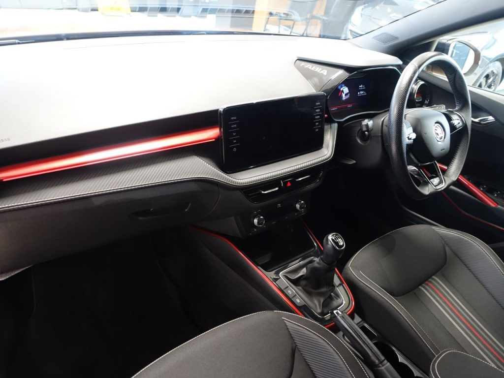 BEAUTIFUL LOOKING, NEW SHAPE FABIA – 1 OWNER FROM NEW, COMES WITH A FULL SKODA MAIN DEALER SERVICE HISTORY + VIRTUAL COCKPIT DIGITAL DASH DISPLAY + SATELLITE NAVIGATION + APPLE CARPLAY / ANDROID AUTO + TOUCH SCREEN MEDIA DISPLAY + APPS CONTROL + LED DAY TIME RUNNING LIGHTS + ECO STOP/START SYSTEM + HILL HOLD START ASSIST + BLUETOOTH INCLUDES PHONE CONNECTION + CRUISE CONTROL + PARKING SENSORS + LEATHER MULTI FUNCTION STEERING WHEEL + AIR CONDITIONING + DAB DIGITAL RADIO + PRIVACY GLASS