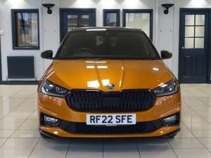 Quality Used 2022 ORANGE SKODA FABIA Hatchback 1.0 TSI Monte Carlo Hatchback 5dr Petrol Manual Euro 6 (s/s) (110 ps) (first registered on 2022-08-11) for sale in Wilmslow. This fantastic Hatchback car is located at Dace Specialist Car Centre Stockport, 417-429 Buxton Road, Stockport, Cheshire, SK2 7HE – near Wilmslow and listed with price tag of £14970.00 GBP.