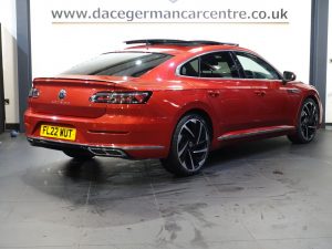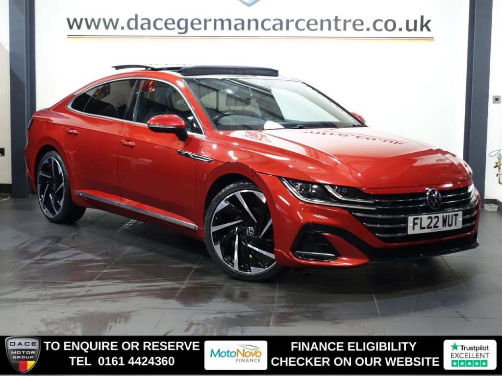 Quality Used 2022 RED VOLKSWAGEN ARTEON Hatchback 2.0 TSI R-Line Fastback 5dr Petrol DSG Euro 6 (s/s) (190 ps) (first registered on 2022-03-31) for sale in Altrincham. This fantastic Hatchback car is located at Dace German Car Centre, 309 Manchester Road, Stockport, Cheshire, SK4 5EA – near Altrincham and listed with price tag of £19440.00 GBP.