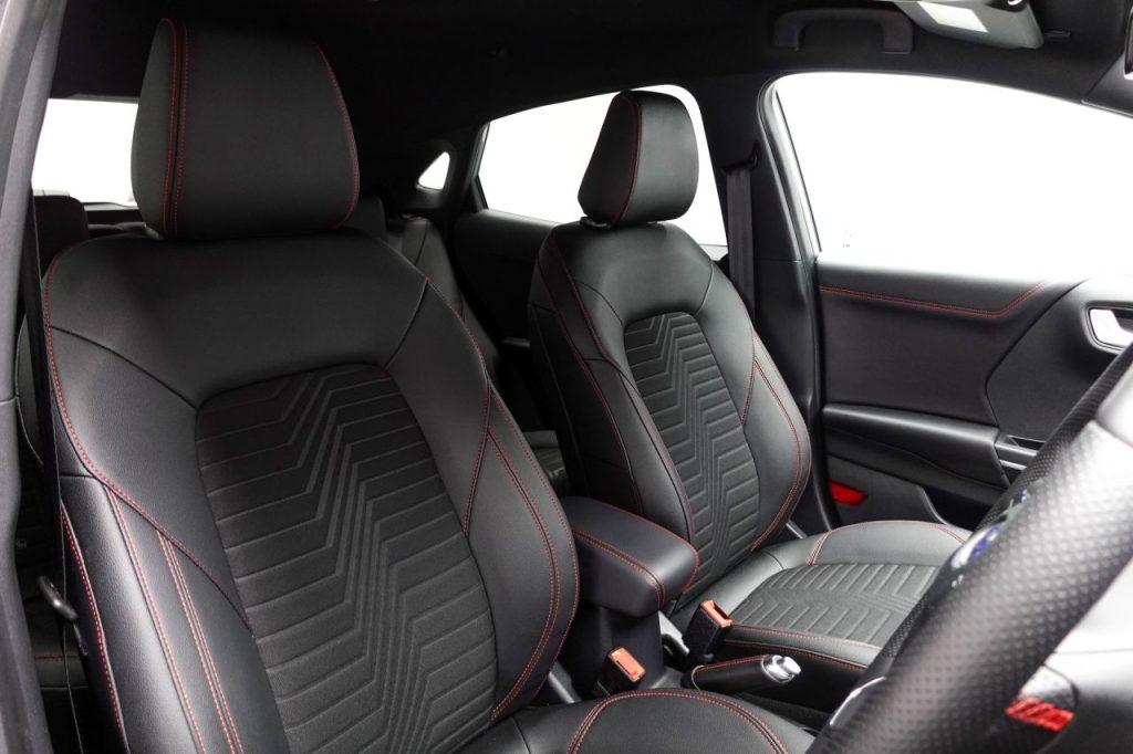 Other features: Automatic Dimming Rear View Mirror,Carbon-Look Interior Deco Spears,Centre Console – Premium with Openable Stowage Area with USB Connectivity – 2 Cupholders and 12v Power Point,Courtesy Lights – Ambient LED Courtesy Lighting – Single Colour,Drivers Manual 4-Way Seat Adjustment with Manual Lumbar Adjust,Electronic Air Temperature Control – EATC,Floor Mats – Front and Rear,Ford MegaBox Extended Bootspace,Ford Power Starter Button,Front Seats – Sports Style,Full Digital 12.3in Instrument Cluster,Gear Knob – Aluminium,Handbrake – Black Sensico Trimmed with Stitching,Headliner – Deluxe,Instrument Panel – High Level,Passenger 4-Way Seat with Lumbar Adjustment,Rear Seats – 2-Way Head Restraint Up-Down,Rear Seats – Second Row 60-40 Folding Seats,Restrain Device Pack,Soft-feel Gearshift Boot with Red Stitching,ST-Line Flat-Bottomed Leather Steering Wheel with Unique Red Stitching 18in Alloy Wheels – 5-Spoke – Matt Black Machined Finish,Acoustic Laminated Windscreen,Active Grille Shutter,Ecoboost Hybrid Tailgate Badge,Electric Windows – Front and Rear,Front Bumper – Unique ST-Line Sport Design – Body Colour,Large Rear Spoiler – Body Colour with Centre High Mounted Stop Light,Locking Wheel Nuts,Lower Bodyside Moulding – Body Colour,Power-Foldable Heated Door Mirrors with Puddle Lamps,Privacy Glass,Puma Badge,Quickclear Heated Windscreen,Rear Bumper Body Colour – Diffuser,ST-Line Badge,ST-Line Body Styling Kit,Tailgate – Manual,Tyre Inflation Kit ABS – Anti-lock Braking System,Cruise Control with Intelligent Speed Assist,Emergency Brake Warning – Automatic Hazard Warning Lights,ESC – Electronic Stability Control and Hill Start Assist,First Aid Kit Strap,Lane Keeping Aid with Lane Departure Warning,Post Collision Braking,Pre-Collision Assist with Autonomous Emergency Braking and Pedestrian-Cyclist Detection,Rear Parking Sensors,Remote Central-Double Locking,Thatcham Alarm,Traction Control and Emergency Braking Assistance,Trip-Fuel Computer,Tyre Pressure Monitoring System – TPMS Automatic Headlights with Rain-Sensing Wipers and Auto High Beam,Front Fog Lights with Cornering lights and LED Rear Lamps,Intelligent Speed Assistance,Partial Premium Sensico – Black with Red Stitching,Power Steering,Projector Headlamps with LED Daytime Running Lights,Selectable Driving Modes – Normal – Eco – Sport – Slippery and Trail,Solar Silver,Speed Limiter,Sports Suspension