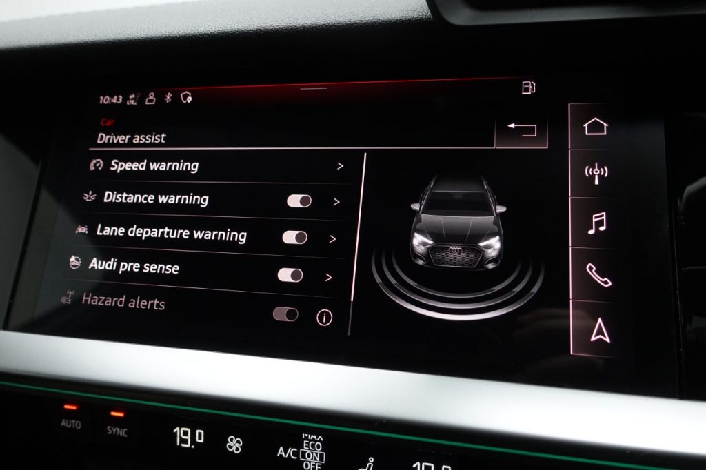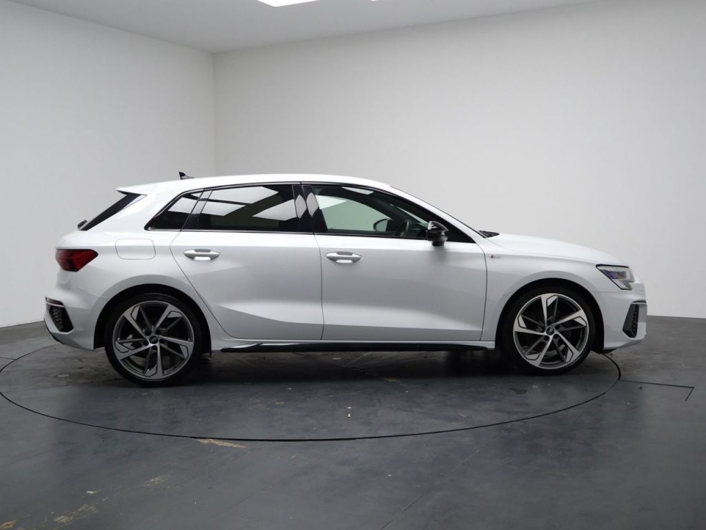 Other features: 4-Way Lumbar Support for Front Seats,Aluminium Interior Elements,Audi Virtual Cockpit Plus,Auto Dimming and Frameless Rear View Mirror,Cloth Headlining in Black,Dual-Zone Electronic Climate Control,Electrically Adjustable Front Seats with Memory Function for Drivers Side,Front and Rear Centre Armrest in Leather,Front and Rear Floor Mats,Heated Front Seats,Illuminated Door Sill Trims with Aluminium Inserts and S Logo,Illuminated Vanity Mirrors,Inlays – Dark Spectrum Aluminium,Luggage Compartment Floor Covering,Pedals in Stainless Steel and Footrest in Black,Split-Folding Rear Seat Bench can be Split 40: 20: 40 or Fully, with Centre Armrest and Cup Holders,Steering Wheel – Sports Contour Leather-Wrapped with Multi-Function Plus 3-Spoke – Shift Paddles Flat-bottomed,Tool Kit 19in Alloy Wheels – 5-Arm Trapezoid Design in Titanium Matt Grey – Diamond Cut Finish,Aluminium Window Trims,Anti Theft Locking Wheel Bolts,Black Styling Pack,Electric Windows – Front,Exterior Mirrors – Electrically Adjustable – Heated and Folding – Automatically Dimming on Both Sides with Built-In LED Side Indicators – Including Automatic Kerb-Side Function for the Passenger-Side,Manual Boot Compartment Lid,Privacy Glass,Privacy Glass – Dark-Tinted Rear Window – Rear Door and Side Window.,Rear Side Air Outlets – Grained Matt Black,S Line Bumpers,S Roof Spoiler,Tyre Repair Kit,Windscreen with Acoustic Glazing Airbags – Driver and Front Passenger with Passenger Airbag Deactivation,Anti-Theft Alarm,Audi Drive Select,Audi Pre-Sense Front with Pedestrian and Cyclist Recognition,Child Locks – Manual,Collision Avoidance Assistant,Cruise Control,Electronically Operated Child Locks,ESC – Electronic Stabilisation Control inc ABS – ASR and EDL,First Aid Kit and Warning Triangle and 2 Safety Vests,Front Side Airbags with Head Airbags and Interaction Airbag,Hill Hold Assist,I-Size and Top Tether Child Seat Mounting for the Outer Rear Seats,Lane Departure Warning,Rear Parking Sensors,Remote Central Locking,Seat Belt Monitoring,Tyre Pressure Loss Indicator,Voice Control System with Natural Language Interaction Audi Matrix LED Headlights with LED Rear Lights – Dynamic Front and Rear Indicators – Headlight Cleaning System,Automatic Start-Stop System with Recuperation,Dinamica Microfibre-Artifical Leather – Front Sports Seats with S Embossed Logo – Black,Electromechanical Power Steering,Glacier White,Ibis White,Light and Rain Sensor,Sport Suspension