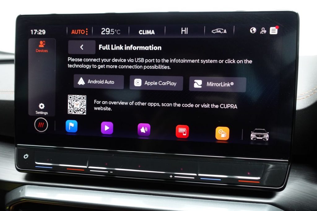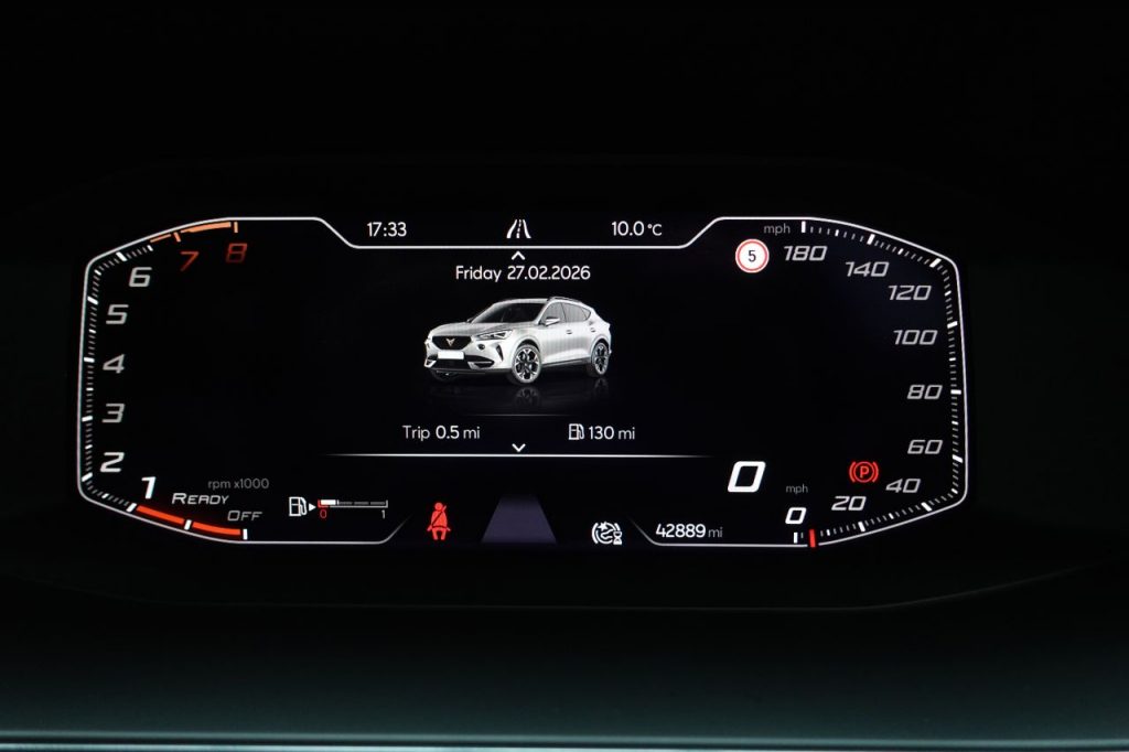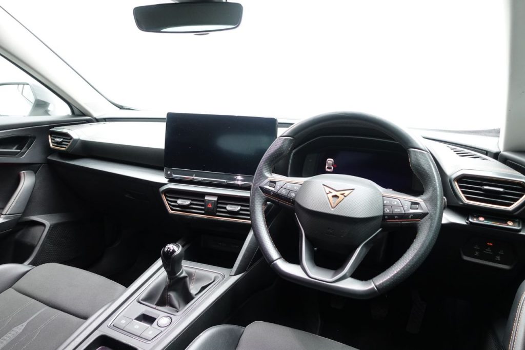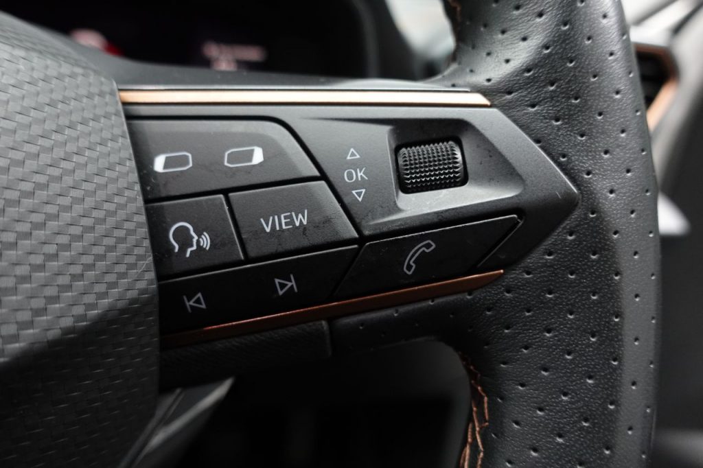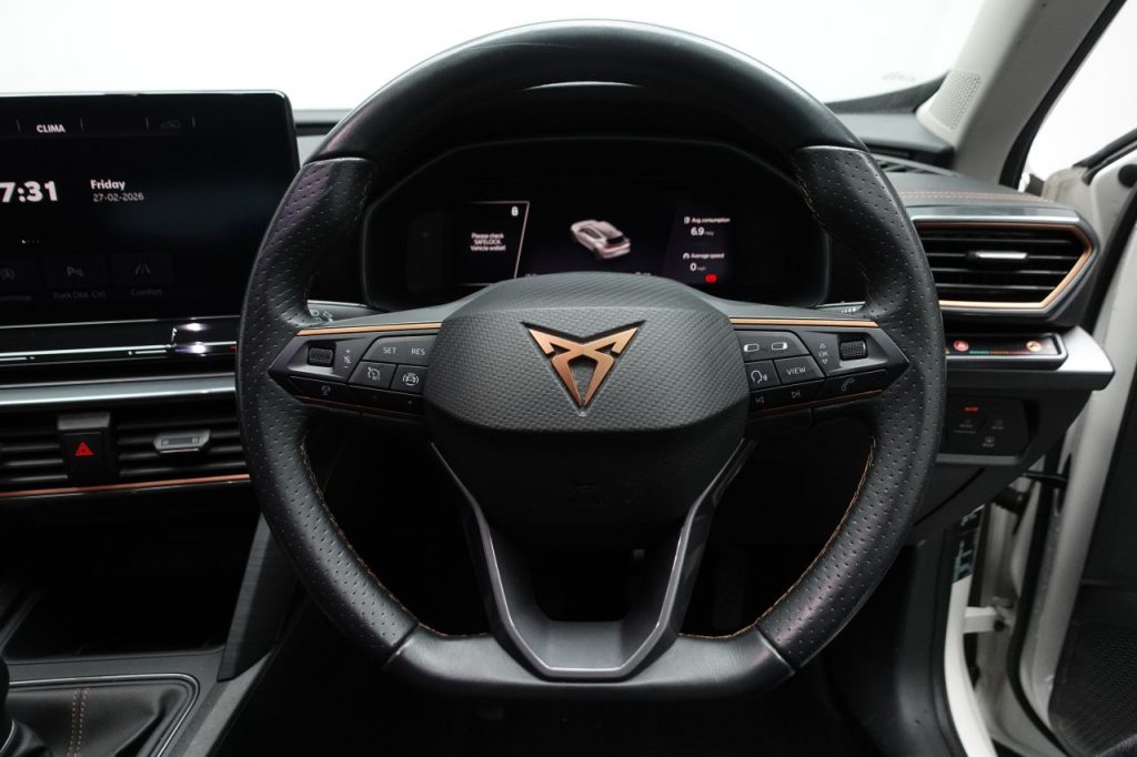 Other features: 60-40 Rear Seats with Central Armrest and Mechanical Seat Release,Auto Dimming Rear View Mirror,Black Sports Seats with Copper Stitching,Copper and Aluminium Interior Detailing,Front and Rear Head Restraints,Front Centre Armrest,Headlining – Grey,Illuminated Interior Front Door Sills,Illuminated Sunvisor with Mirror,Interior Ambient Lighting,Leather Multi-function Steering Wheel,Manually Adjustable Height and Lumbar Support for Front Seats,Rain Sensing Wipers,Reading Lights – 2x Front – 2x Rear,Three Zone Climate Control with Control Panel in the Rear,Variable Luggage Compartment Floor,Welcome Lights 18in Alloy Wheels – Performance Machined Sport – Black and Silver,Breakdown Kit,Door Mirrors Electrically Adjustable – Folding and Heated,Electric Window – Front,Electronic Locking Differential with Dynamic Traction Support,Gloss Black Roof Rails and Window Surrounds,Locking Wheel Bolts,Rear Diffuser with Black Simulated Exhaust Pipes,Tinted Rear Windows ABS – Anti-Lock Braking System,Airbag on Driver and Front Passenger Side with Front Passenger Airbag Deactivation,Anti-Theft Alarm,CUPRA Connect – Safety – Service – Remote and Online,Digital Cockpit and Configurable Dashboard,Driver Alert System,Driving Profile Selection,Electronic Parking Brake,Forward Collision Warning with Automatic Braking,Front Side Curtain Airbag,ISOFIX,Kessy – Keyless Entry and Start,Lane Assist,Predictive Adaptive Cruise Control with Speed Limiter,Rear Parking Sensors,Safety and Driving Pack M,Seat Belt Reminder,Tyre Pressure Monitoring System Daytime Running Lights with Automatic Headlight Control and Coming-Leaving Home Lights,Dynamic Headlight Range Control,Front Fog Lights with Cornering Function,LED Headlight,LED Taillights with Dynamic Indicator,Nevada White,Power Steering,White