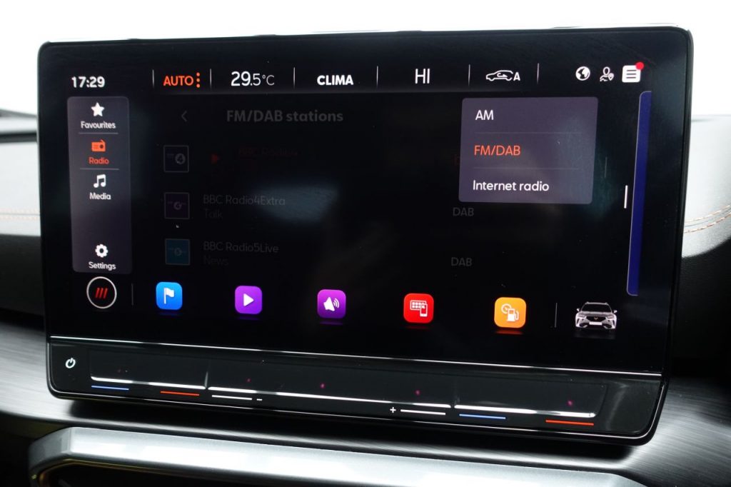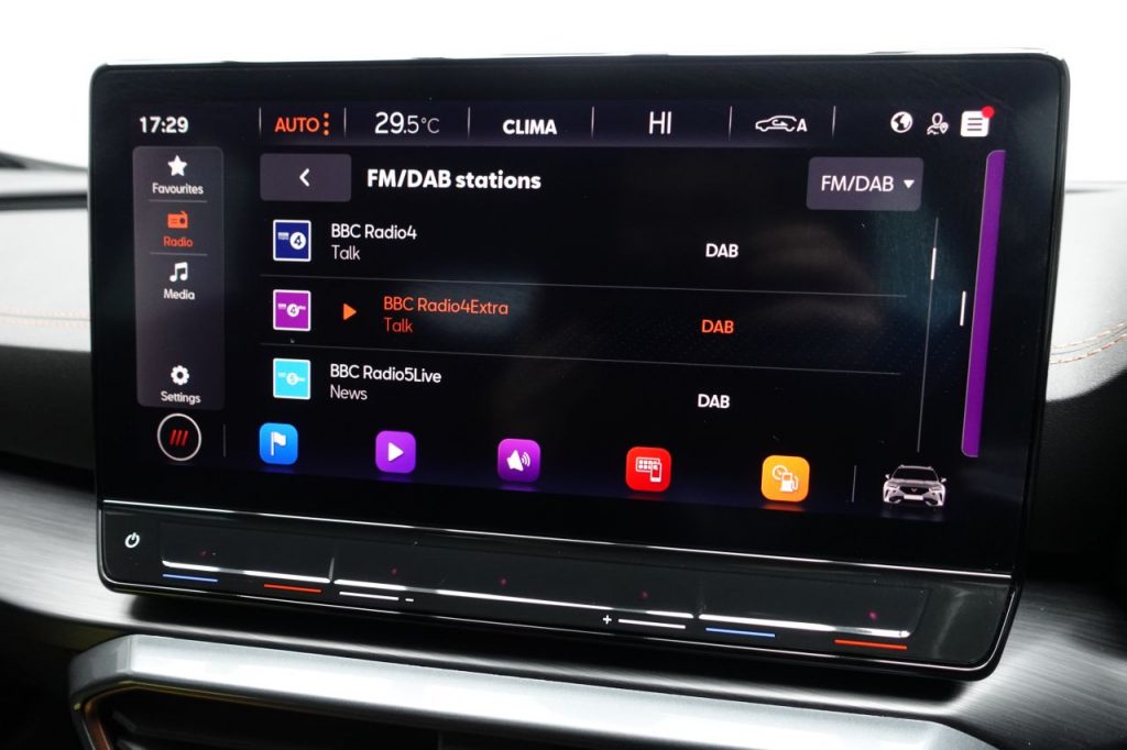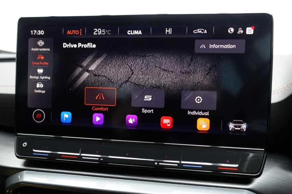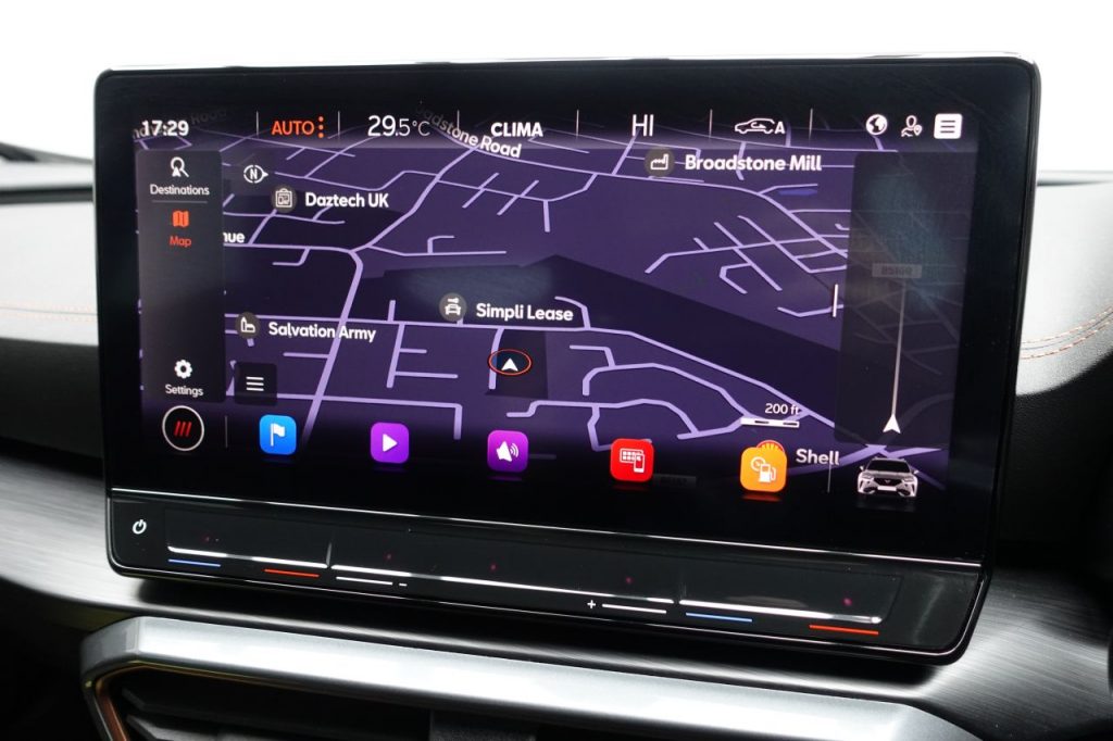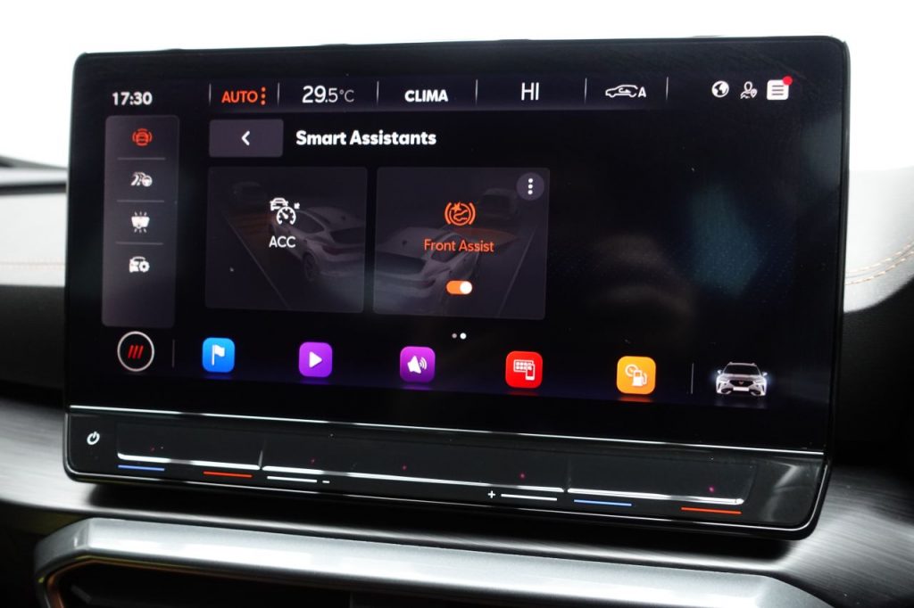 Other features: 60-40 Rear Seats with Central Armrest and Mechanical Seat Release,Auto Dimming Rear View Mirror,Black Sports Seats with Copper Stitching,Copper and Aluminium Interior Detailing,Front and Rear Head Restraints,Front Centre Armrest,Headlining – Grey,Illuminated Interior Front Door Sills,Illuminated Sunvisor with Mirror,Interior Ambient Lighting,Leather Multi-function Steering Wheel,Manually Adjustable Height and Lumbar Support for Front Seats,Rain Sensing Wipers,Reading Lights – 2x Front – 2x Rear,Three Zone Climate Control with Control Panel in the Rear,Variable Luggage Compartment Floor,Welcome Lights 18in Alloy Wheels – Performance Machined Sport – Black and Silver,Breakdown Kit,Door Mirrors Electrically Adjustable – Folding and Heated,Electric Window – Front,Electronic Locking Differential with Dynamic Traction Support,Gloss Black Roof Rails and Window Surrounds,Locking Wheel Bolts,Rear Diffuser with Black Simulated Exhaust Pipes,Tinted Rear Windows ABS – Anti-Lock Braking System,Airbag on Driver and Front Passenger Side with Front Passenger Airbag Deactivation,Anti-Theft Alarm,CUPRA Connect – Safety – Service – Remote and Online,Digital Cockpit and Configurable Dashboard,Driver Alert System,Driving Profile Selection,Electronic Parking Brake,Forward Collision Warning with Automatic Braking,Front Side Curtain Airbag,ISOFIX,Kessy – Keyless Entry and Start,Lane Assist,Predictive Adaptive Cruise Control with Speed Limiter,Rear Parking Sensors,Safety and Driving Pack M,Seat Belt Reminder,Tyre Pressure Monitoring System Daytime Running Lights with Automatic Headlight Control and Coming-Leaving Home Lights,Dynamic Headlight Range Control,Front Fog Lights with Cornering Function,LED Headlight,LED Taillights with Dynamic Indicator,Nevada White,Power Steering,White