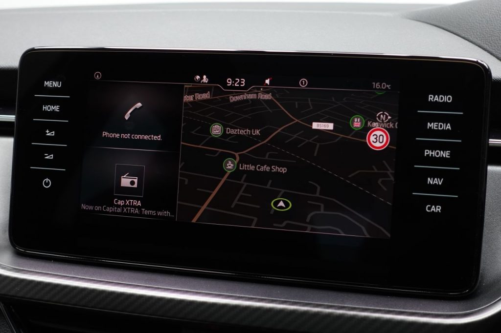 Other features: 3-Spoke Leather Sport Multifunction Steering Wheel with DSG Paddles,3-Spoke Sports Leather Multi-Function Steering Wheel,Air Conditioning – Climate Control Dual Zone,Aluminium Pedals,Ambient Lighting Red,Ambient Lighting White,Black Dot Decorative Insert with Red Hot Stamping,Boot Package,Carbon Effect Decorative Inserts,Chrome Interior Door Handles,Double Sided Boot Floor,Electrically Operated Boot,Front Centre Armrest with 2 Rear USB-C Ports,Front Centre Armrest with Stitching,Glasses Storage in Roof Liner,Heated Front Seats with Heated Washer Nozzles,Height Adjustable Driver Seat,Instrument Cluster – Monte Carlo,Keyless Start-Stop,Manual Air Conditioning with Pollen Filter,Manual Lumbar Support for Front Seats,Net Partition,Rain and Light Assistant with Auto-Dimming Rear View Mirror,Reading Lights in the Front – For Driver and Passenger,Rear Centre Armrest,Seats – Electrically Adjustable Drivers Seat,Seats – Front Passenger Height Adjustment,Simply Clever Package,Smokers Pack with Ashtray and Multimedia Ho 18in Alloy Wheels – Vega in Black,Anti-Theft Locking Wheel Bolts,Black Roof Spoiler,Door Handles – Body Coloured,Door Mirrors – Black,Door Mirrors – Electrically Folding,Electrically Folding Tow Bar,Electrically Folding Tow Bar with Adaptor,Exterior Design Pack,Front and Rear Electric Windows,Heated Windscreen,Privacy Glass,Radiator Grille – Black,Rear Diffuser – Black,SKODA Lettering on Tailgate in Black,Temporary Steel Space Saver Spare Wheel,Tinted Windows ABS – Anti-Lock Braking System,Airbags – Driver Knee,Alarm,Crew Protection Assistant and Rear Side Airbags,Cruise Control,Curtain Airbags,Drivers and Front Passenger Air Bag,Front Assist,Front Head and Side Airbags,HHC – Hill Hold Control,ISOFIX for Rear Passenger Seat,Keyless Entry and Start-Stop System,Lane Assist,Multifunction Trip Computer,One Tone Horn,Parking Sensors – Rear,Passenger Airbag Switch Off Function,Rear View Camera,Remote Central Locking,Remote Central Locking with SAFE Function,Seatbelt Reminder,Sport Chassis Control with Drive Mode Select for Towing ACC – Adaptive Cruise Control,Automatic Headlight Control,Basic LED Headlights with LED Daytime Running Lights,Black Magic,Brilliant Silver,Candy White,Cloth – Black,Drive Mode Select,Driver Fatigue Sensor,Energy Blue,Extended Warranty – 4 Years or 100000 Miles,Extended Warranty – 4 Years or 80000 Miles,Extended Warranty – 5 Years or 100000 Miles,Front Fog Lights,Headlights – Washers,High Beam Control,Meteor Grey,Moon White,Park Assist,Parking Sensors – Front and Rear,Power Steering,Quartz Grey,Race Blue,Rear LED Lights with Dynamic Indicators – High Functionality,Speed Limiter,Towbar Preparation,Travel Assist,USB C Port by Rear View Mirror – Charging Only,Velvet Red,Voice Control,Wireless Charging,Wireless SmartLink for Apple Car Play