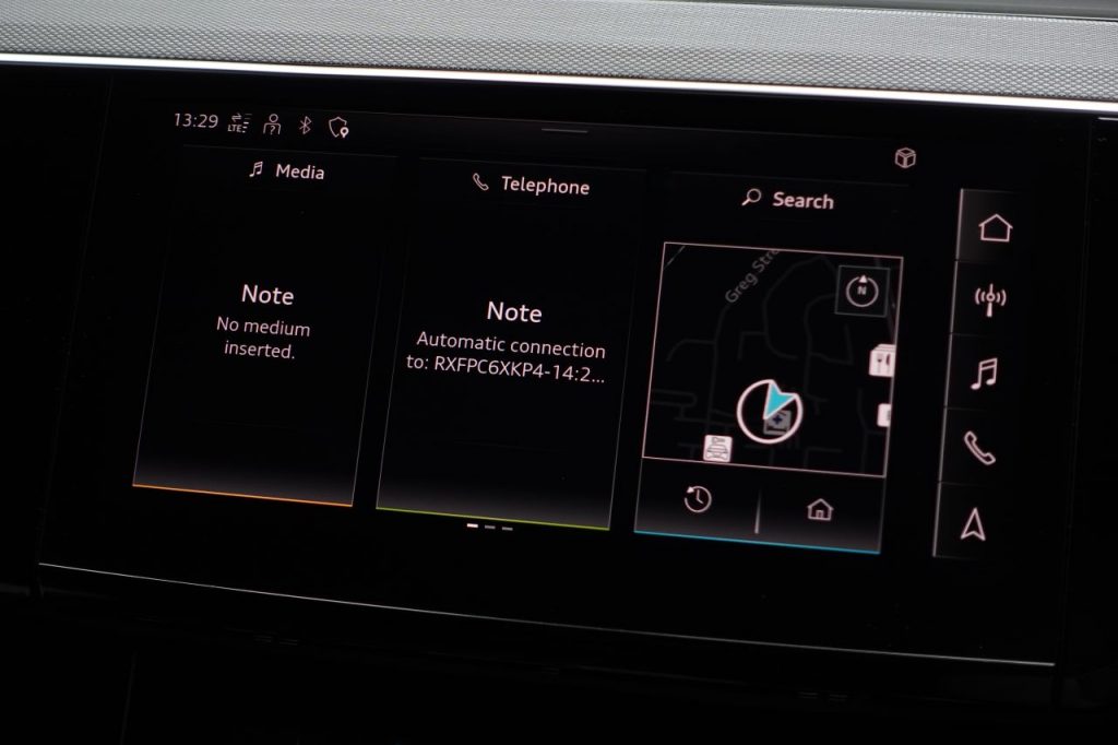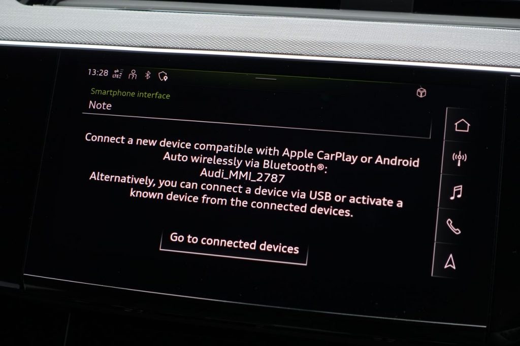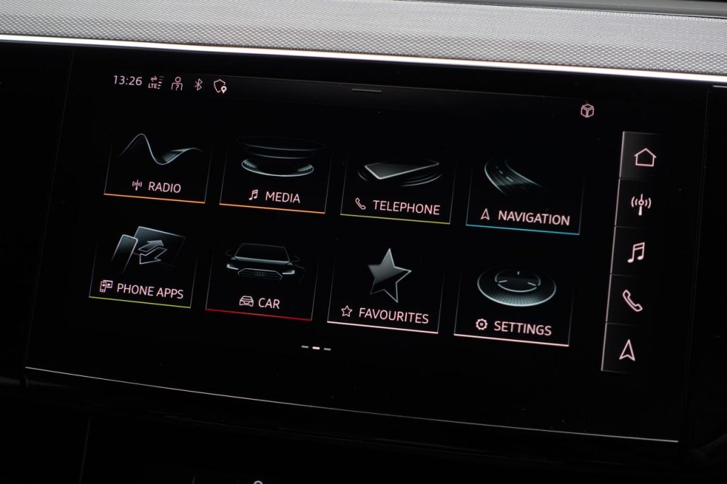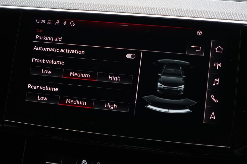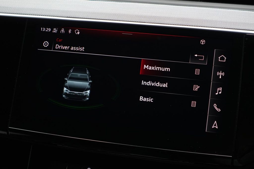 Other features: 2-Zone Automatic Air Conditioning,3-Spoke Flat Bottom Leather Multi-Function Steering Wheel – Paddles for Recuperation,4-Way Lumbar Support for Front Seats,AC and DC Charging Access Point on Drivers Side and Second AC Charging Access Point on Passenger Side,Audi Virtual Cockpit,Auto-Dimming Rear-View Mirror – Frameless,Comfort Front Centre Armrest,Electrically Adjustable Front Seats including Memory Function for Drivers Seat,First Aid Kit with Warning Triangle,Floor Mats – Front and Rear,Heated Front Seats,Illuminated Door Sill Trims with Aluminium Inserts and S Logo in Front,Industry Plug CEE 32 A-230 V-6 h-Long and Straight,Interior Inlays – High Tech Mesh Anthracite,Keyless Go,LED Interior Lighting Pack,Luggage Compartment Cover,Luggage Compartment Floor,Manual Steering Column Adjustment,Operating Buttons in Black – Glass Look with Haptic Feedback,Pedals in Stainless Steel,Power-Operated Tailgate,Removable Net Partition,Sun Visors with Illuminated Vanity Mirrors,Technology Pack,Technology Pack Pro,Tool Kit 21in Alloy Wheels – 9.5J 10-Spoke Rotor Gloss Anthracite Black Audi Sport – Diamond Cut,21in Alloy Wheels – Audi Sport 5-Arm Aero Design in Glossy Black,Acoustic Glazing for the Door and Side Windows,Anti Theft Wheel Bolts and Wheel Loosening Detection,Bumpers – Body Colour,Collapsible Spare Wheel with Car Jack,Door Mirrors – Black,Door Mirrors – Electrically Adjustable – Heated – Folding – Automatically Dimming with Memory Function with Kerb View Function for Passenger Side,Electric Windows – Front and Rear,Gloss Black Styling Pack,Privacy Glass – Rear and Rear-Side Windows,Roof Rails – Black,S Line Badge on the Front Grille,S Line Front and Rear Bumpers,S line Rear Diffuser,Tow Bar,Tyre Mobility System,Virtual Door Mirrors,Windscreen with Acoustic Glazing ABS – Anti-Lock Braking System,Active Vehicle Alerting System – AVAS,Airbags – Driver,Airbags – Front Passenger,Anti-Theft Alarm,Audi Drive Select,Audi Pre-Sense Front and Basic,Camera-Based Traffic Sign Recognition,City Assist Pack,Compact e-tron Charging System,Cruise Control with Speed Limiter,ISOFIX Child Seat Mounting for Outer Rear Seats,ISOFIX Child Seat Mounting for Passenger Seat with Front Passenger Airbag Deactivation,Lane Departure Warning,Parking System Plus with 360 Degree Sensors and Function-On-Demand Preparation,Rear Side Airbags with Illuminated Seat Buckles,Rear-View Camera,Side Airbags – Front and Head Airbag System,Tour Pack,Tyre-Pressure Warning Light 11kW On-Board Charger,AC Charging Cable – Mode 3 – Type 2 – 22kW,Adaptive Sport Air Suspension,Audi Beam with e-tron Logo,Audi Matrix LED Headlights and Dynamic Front and Rear Indicators with Coming and Leaving Home Animations,Audi Warranty 4 Years – 75000 Miles – Whichever Comes First,Audi Warranty 5 Years – 90000 Miles – Whichever Comes First,Chronos Grey,Daytona Grey,Glacier White,Household Plug Type G – GB,Leather-Dinamica – Sport Seats with S Embossed Logo – Black with Rock Grey Stitching,LED Rear Lights,Madeira Brown,Magnet Grey,Multicolour,Mythos Black,Plasma Blue,Progressive Steering,Soneira Red,Ultra Blue,Valcona Leather – Black,Valcona Leather – Rotor Grey,Wall-Mounted Bracket for Compact e-Tron Charging System
