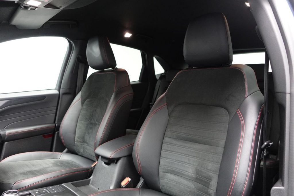 Other features: 10-Way Power Adjustable Drivers Seat,2nd Row Sliding Seats,8-Way Manual Passenger Seat including Lumbar Support and Height Adjust,Air Conditioning – Electronic Automatic Temperature Control – EATC,Aluminium Foot Pedals – ST-Line Design,Ambient Lighting,Auto Dimming Rear View Mirror,Auto Wipers,Centre Console with Electronic Parking Brake,Digital Colour 12.3in Instrument Cluster,Driver and Passengers Sun Visor with Illumination,Electrical Charging Point in Second Row,Front and Rear Floor Mats with Red Stitching,Front Seats – 2-Way Manual Height Adjust Passive Head Restraints,Front Seats – Drivers and Passengers Seatback Map Pockets,Front Seats – Sports Style V-shape with High Bolster,Gearshift – Automatic – Electronic Rotary Gearshift Dial,GEO Awareness – Providing Details of ULEZ Within the Satellite Navigation,Glovebox Lights,Handsfree Power Tailgate,Headliner – Sports Dark,Load Compartment – Lights,Load Compartment – Tie Down Hooks,Load Compartment Carpet,Lower Door Frame Beltline – Black,Mini Overhead Cons 18in Alloy Wheels – 10 Spoke – Rock Metallic,Aluminium – Finish Front Scuff Plates with ST-Line Script,Black Roof Rails,Dual Exhaust Tailpipes with Unique Brushed Stainless Steel Finish,Exterior Door Handles – Body Coloured,Front and Rear Bumper – Sporty Body Colour with Rear Ebony High-Gloss Insert,Front Lower Grille – Ebony Black Mesh,Front Upper Grille – Carbon Black Honeycombe Mesh and High-Gloss Black Surround,Front Windows – Laminated Glass,Heated and Power Folding Door Mirrors with Puddle Lights,Kuga Badge,Large Rear Spoiler,Locking Wheel Nuts,Lower Bodyside Moulding – Body Colour,Quickclear Heated Windscreen,Rear Privacy Glass,Red Brake Calipers,Rocker Panel Mouldings – Body Colour – ST-Line Design,ST-Line Badge on Left and Right Side Wings,ST-Line Bodystyling Kit,ST-Line Front and Rear Bumper Moulding – Body Colour,Tailgate Badge – PHEV – Plug-In-Hybrid,Tailgate Handle – Body Colour,Tow Hooks – Front and Rear,Tyre Inflation Kit,Windows – Power Front and Rear with Global Closing ABS – Anti-lock Braking System,Acoustic Vehicle Alert System – AVAS,Airbag – Driver and Front Passenger Side,Airbag – Front Passenger Deactivation Switch,Airbags – Driver and Front Passenger,Airbags – Front and Rear Side Curtain,Automatic Door Relocking,Child Locks – Manual on Rear Doors,Cruise Control with Speed Limiter,Electric Parking Brake with Auto Hold,Engine Immobiliser – SecuriLock,Enhanced Electronic Stability Control – ESC with Traction Control – Emergency Brake Assist – EBA – Hill Start Assist – HSA and Trailer Sway Control,Ford Easy Fuel System,Ford Keyfree System – Keyless Entry with Ford Power Starter Button,Front and Rear Parking Sensors,Lane Keeping Aid with Lane Departure Warning,Power Door Deadlocks – Double Locking,Power Door Locks,Pre-Collision Assist with Autonomous Emergency Braking,Rear View Camera,Seat Belt – Drivers – Front Passenger and Rear Seat Belt Reminder Alert,Seat Belts – Front 3-Point Seatbelts with Load Limiter,Seat Belts – Front Height Adjustable,Seat Belts – Rear Retractab Chrome Blue,EPAS – Electric Power Assisted Steering,Full LED Headlamps,Headlights – Automatic Follow Me Home Lighting,Headlights – Automatic High Beam Assist,Headlights – Levelling System – Manual,Headlights – Unique Bending,High-Mounted Brake Light,LED Daytime Running Lights,LED Fog Lights – Front,Partial Sensico – Rapton Cloth – Black with Red Stitching,Rear Lights – LED,Standard Home Charging Cable – 3-Pin Domestic Socket 230V,Suspension – Sports,Wireless Charging
