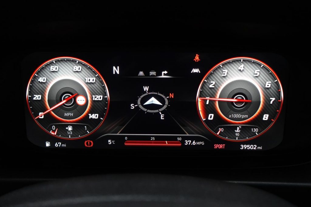 Other features: Adjustable Head Restraints,Adjustable Intermittent Front Windscreen Wipers with Aero Wiper Blade,Armrest – Front with Storage,Automatic Dimming Rear View Mirror,Automatic Windscreen Wipers with Rain Sensor,Climate Control with Automatic De-Fog System for Front Windscreen,Door Handles Interior – Satin Chrome Effect,Driver Seat Height Adjustment,Front Map Reading Lights,Interior – Black N Line Exclusive with Red Accents,Interior Light – Cabin and Luggage Compartment,Interior Mood Lighting – Blue,Interior Roof Liner – Black,Leather Wrapped Gear Knob with N Logo,Leather Wrapped Steering Wheel with N Logo,Luggage Board,Seats – 60-40 Split Folding Rear,Steering Column – Height and Reach Adjustable,Steering Wheel Audio and Phone Controls,Sun Visors with Driver and Passenger Illuminated Vanity Mirrors,Supervision Instrument Cluster – 10.25in 17in Alloy Wheels – N Line Exclusive Design,Body Colour Bumpers,Branded Tyres – Hankook,Bumpers – N line Body Kit,Door Mirrors – Electric Adjustment and Heated with Power Folding Function,Door Mirrors with Integrated Indicators – Body Coloured,Electric Windows – Front and Rear with Drivers Anti-Trap and One-Touch Up-Down Control,Exterior Door Handles – Body Coloured,Front Grille – Black N Line Exclusive,Locking Wheel Nuts,Privacy Glass – Rear Side Window and Tailgate,Rear Exhaust – Twin Muffler,Rear Spoiler with Integral LED Brake Light,Tinted Windshield,Tyre Repair Kit,Window Surround – Black 6 Airbags – Front – Front Seat Side and Curtain,ABS – Anti-Lock Brake System,Autonomous Emergency Brake,Central Locking – Remote Control,Childproof Rear Door Locks,Cruise Control with Speed Limiter,Deadlocks,Drive Mode Selector,Driver Attention Alert – DAA,ESP – Electronic Stability Programme,ESS – Emergency Stop Signal,Forward Collision Avoidance Assist with Pedestrian and Cycle Detection – FCA,Front Seatbelt Pre-Tensioners,HAC – Hill-Start Assist Control,Height Adjustable Front Seatbelts,Immobiliser,Impact Sensing Auto Door Unlocking,ISOFIX Child Seat Anchorage Points – Rear,Lane Departure Warning System with Lane Keeping Assist,Parking Sensors – Rear,Passenger Airbag De-Activation Switch,Perimeter Alarm,Rear Wiper-Washer with Intermittent Function,Rear-View Parking Camera,Seatbelt Reminder – Front and Rear,Smart Key – Keyless Entry with Engine Start-Stop Button,Speed Sensitive Automatic Door Locking,Trip Computer,Tyre Pressure Monitoring System – TPMS,VSM – Vehicle Stability Management Atlas White,Automatic Headlights with Dusk Sensor,Daytime Running Lights – LED,Electric Power Steering,Front Fog Lights,Headlights – LED with Static Cornering,High Beam Assist,LED Rear Combination Lights