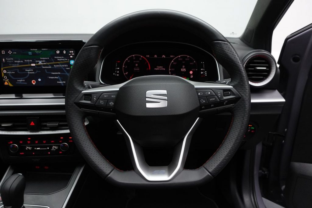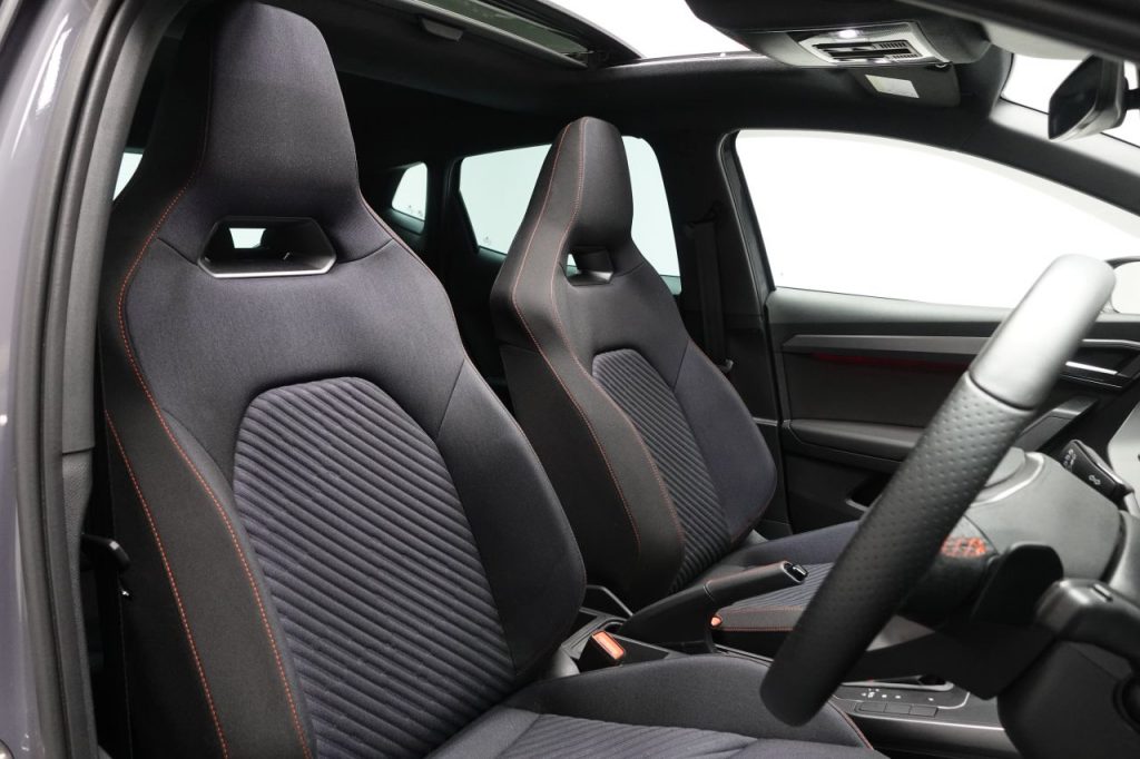 Other features: Anniversary Edition Pack,Auto Dimming Rear View Mirror,Chrome Interior Detailing – Black Headlining,Digital Cockpit – 10in,Driver Sunvisor with Mirror and Card Holder,Dual Zone Climate Control,Front Reading Lights,Grey Interior Air Vents,Height Adjustable Front and Rear Headrests – Five,Height Adjustable Front Seats,Illuminated Air Vent Surrounds,Interior Ambient Light,Rain Sensing Wipers,Seats – Comfort,Split Folding Rear Seats – 60-40,Sports Bucket Seats,Steering Wheel – Nappa Leather Multifunction Flat-Bottomed Sports,Storage Pockets on Back of Front Seats 18in Alloy Wheels – Cosmo Grey,Anti-Theft Wheel Bolts,Dark Tinted Rear Windows,Electric Front Windows,Electric Rear Windows,Electrically Adjustable Folding and Heated Door Mirrors,FR Exterior Styling,Panoramic Sunroof,Space Saver Spare Wheel Alarm and Electronic Engine Immobiliser,Anti-Lock Braking System – ABS,Cruise Control,Front and Rear Seatbelt Reminders,Front Driver and Passenger Side Airbags with Curtain Airbag and Front Passenger Airbag Deactivation,Hill Hold Control,ISOFIX Points in Outer Rear Seats with Top Tether Anchorage Points,KESSY – Keyless Entry and Go,Safety and Driving Pack,SEAT Drive Profile and ECO Function,Three-Point Seatbelts on All Rear Seats,Tyre Pressure Monitoring System Fog Lights – Front and Rear,Full LED Automatic Headlight,Graphene Grey,LED Taillights,Power Steering,Speed Limiter,Sports Suspension